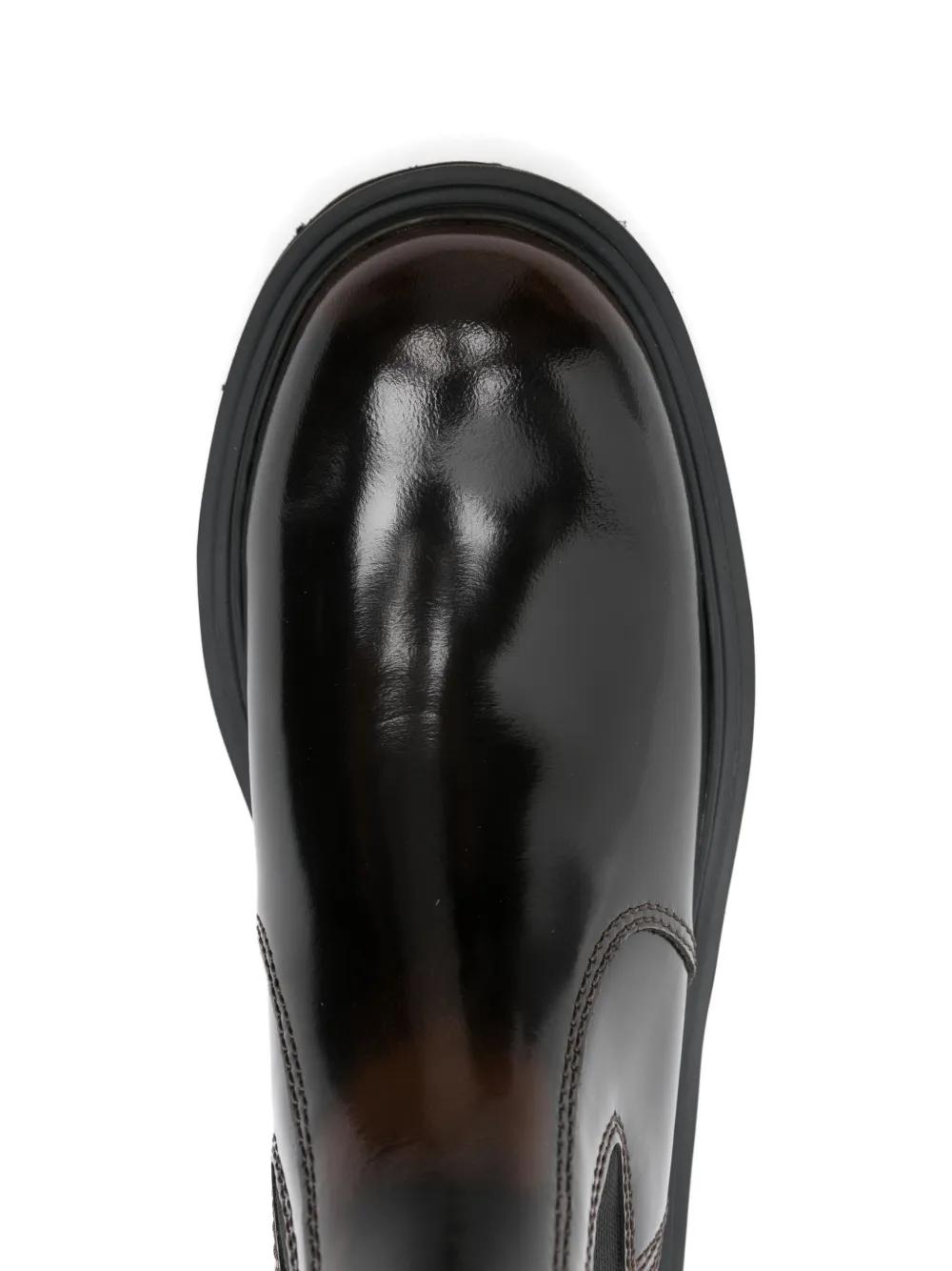 dark brown elasticated side panels pull tab rubber sole round toe topstitching