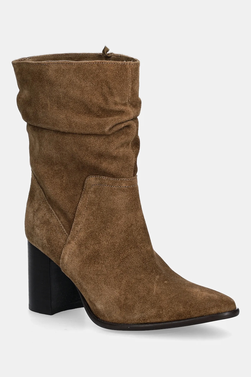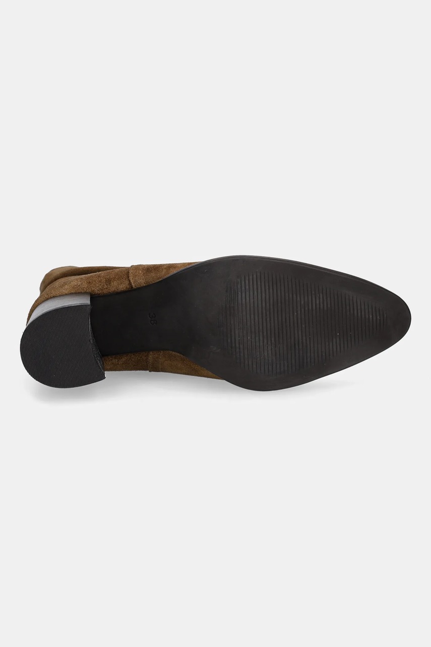 - Zwężany, usztywniony nosek. - Usztywniony zapiętek. - Gumowa podeszwa. - Skórzana wkładka. - Komfortowe wnętrze. - Model na obcasie typu słupek. - Wsuwany model. - Wysokość cholewki: 8 cm. - Obwód cholewki: 35 cm. - Wysokość obcasa: 8 cm. - Długość wkładki wynosi: 24 cm. - Wymiary podane dla rozmiaru: 37.