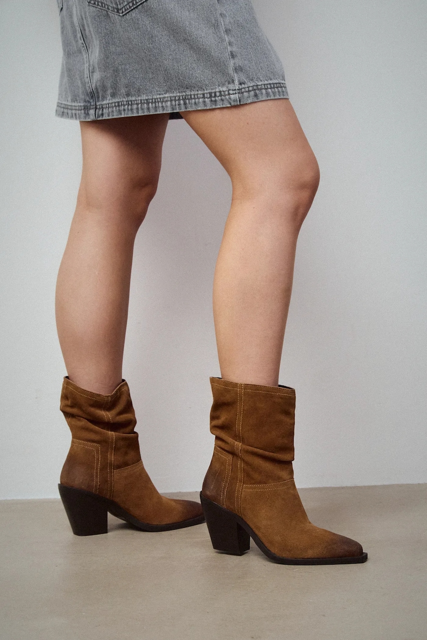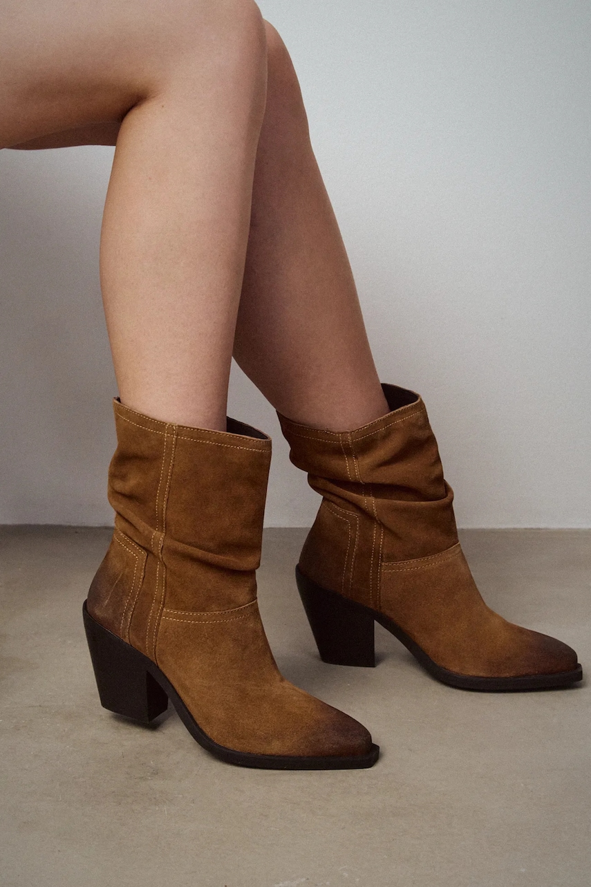 - Zwężany, usztywniony nosek. - Podeszwa wykonana z połącznia gumy i skóry naturalnej. - Usztywniony zapiętek. - Komfortowe wnętrze. - Skórzana wkładka. - Model na obcasie typu słupek. - Wsuwany model. - Obwód cholewki: 33 cm. - Wysokość cholewki: 18 cm. - Wysokość obcasa: 8,5 cm. - Długość wkładki wynosi: 24 cm. - Wymiary podane dla rozmiaru: 37.