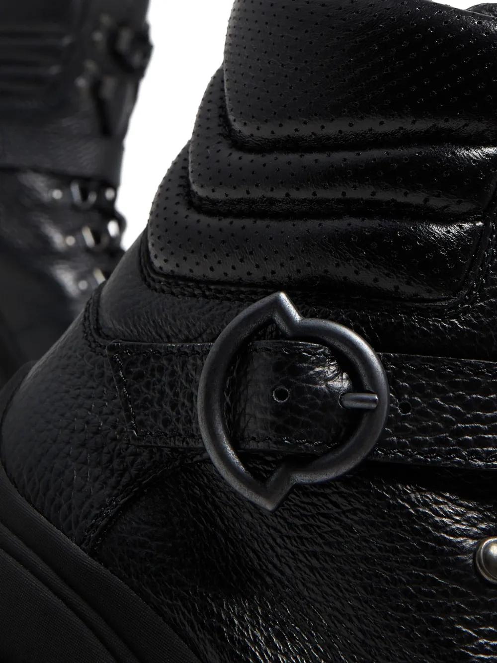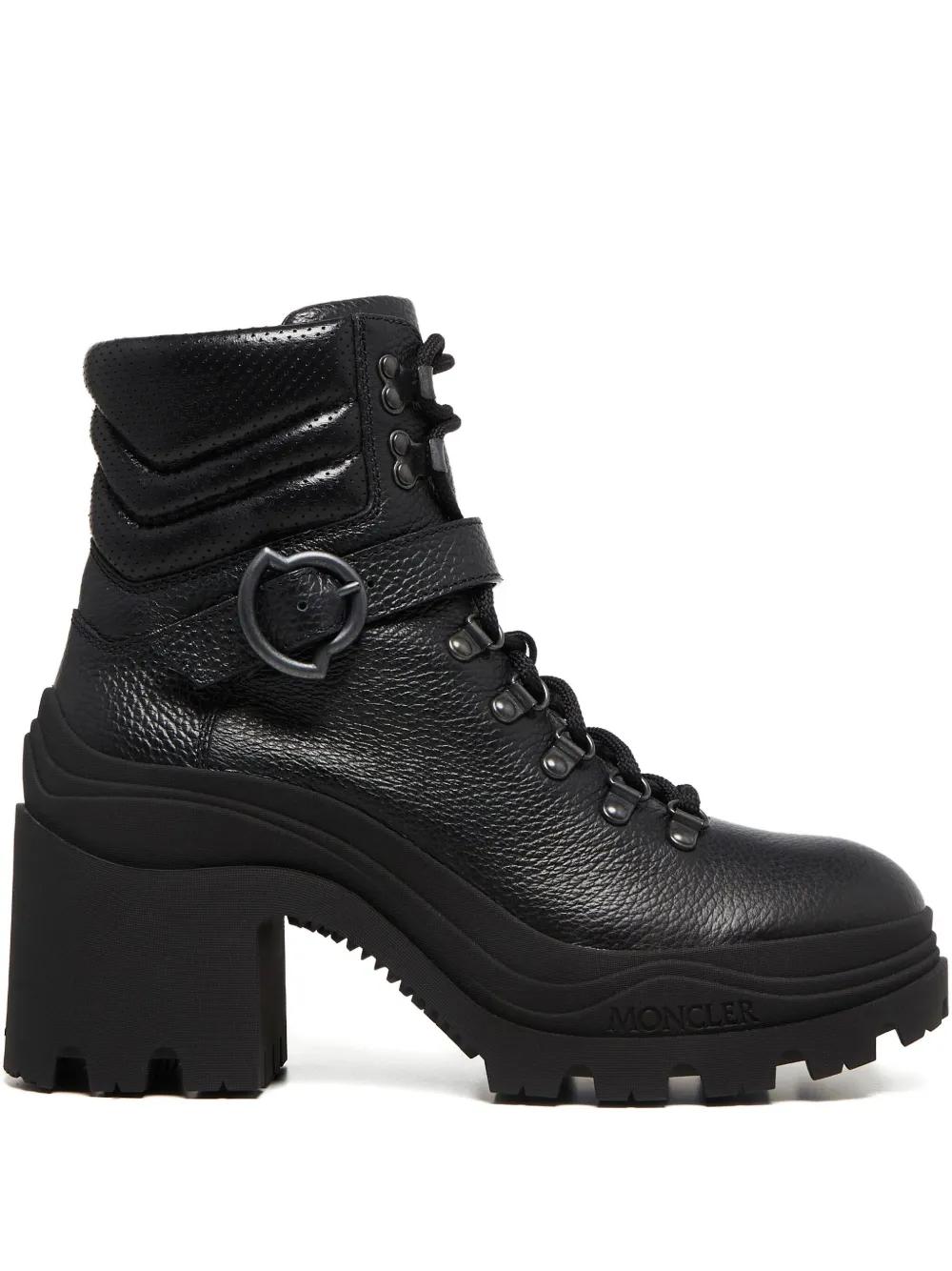 black round toe logo buckle block heel lace-up fastening rubber sole