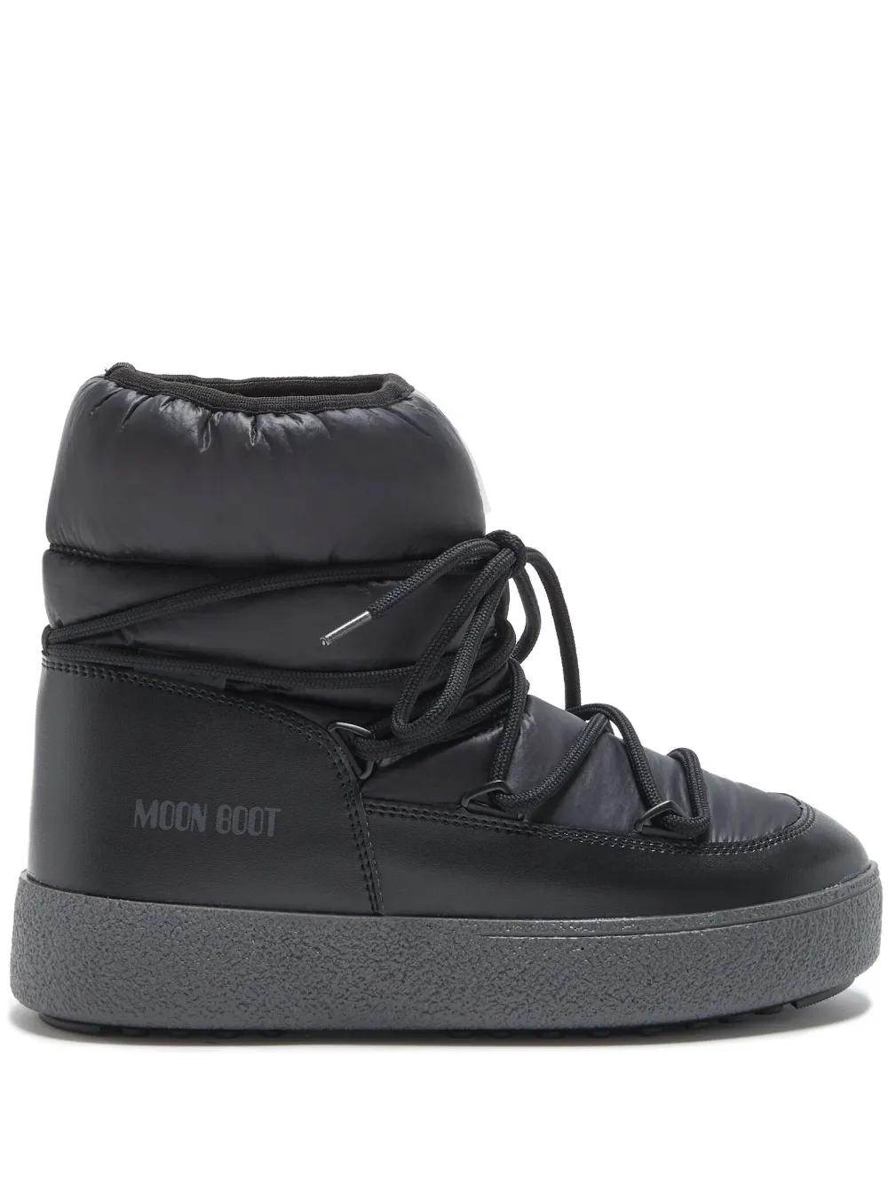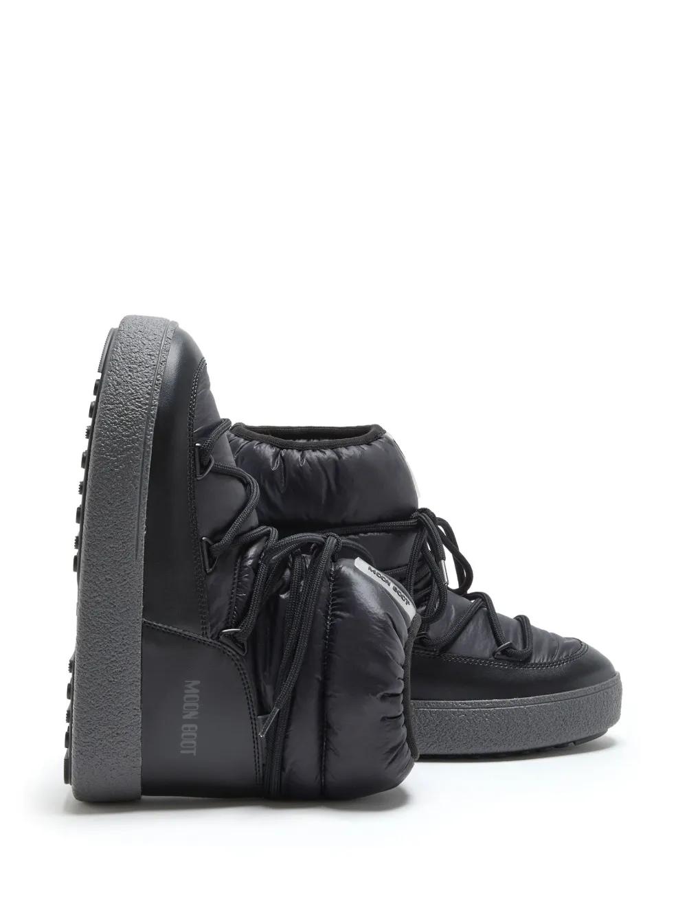 black padded design panelled design logo print to the side logo tag elasticated ankles front lace-up fastening round toe flat rubber sole