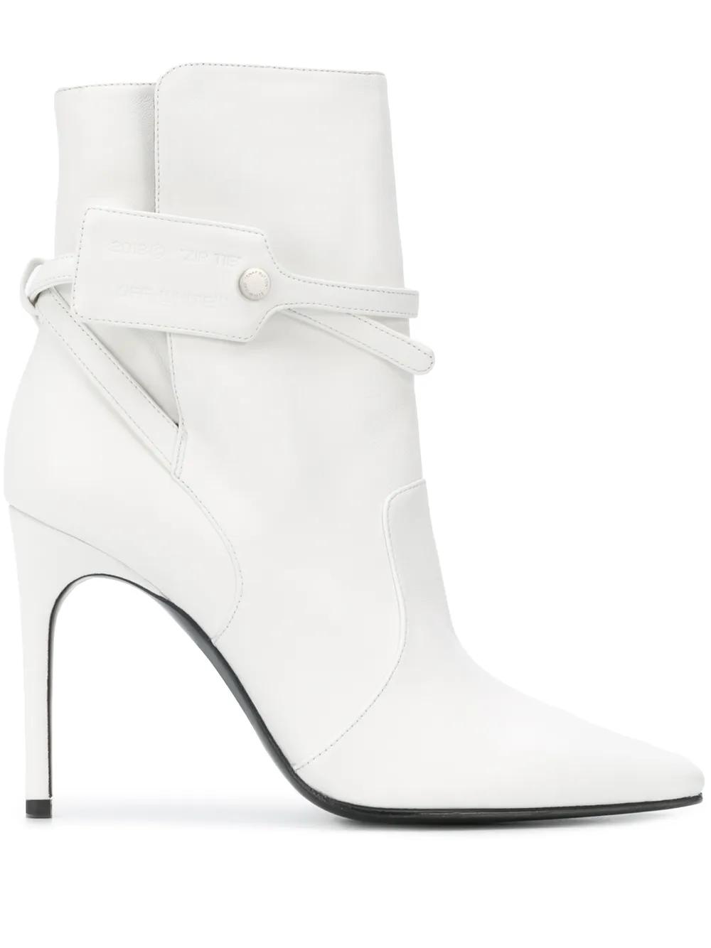 white leather pointed toe ankle-length snap fastening mid heel tonal signature security tag