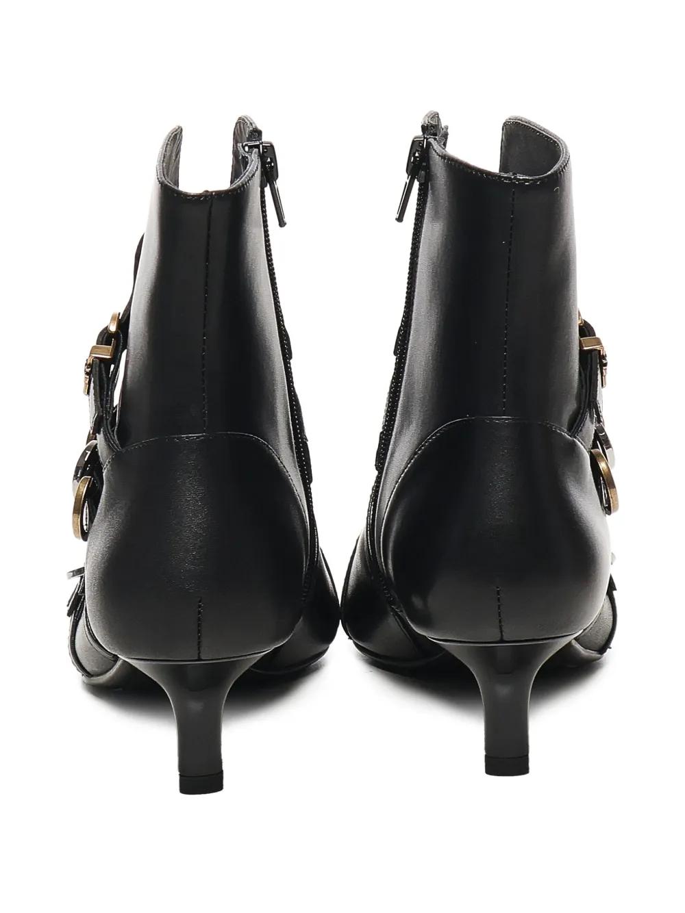 black leather upper multiple buckles pointed toe zip fastening