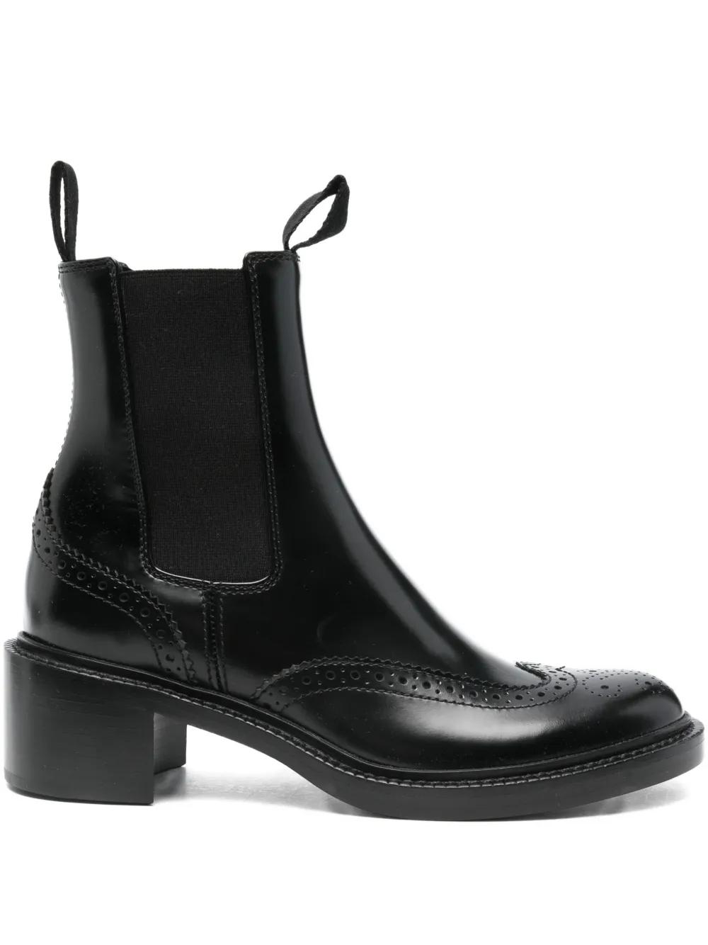 black brogue detailing elasticated side panels pull-tab at the opening block heel round toe