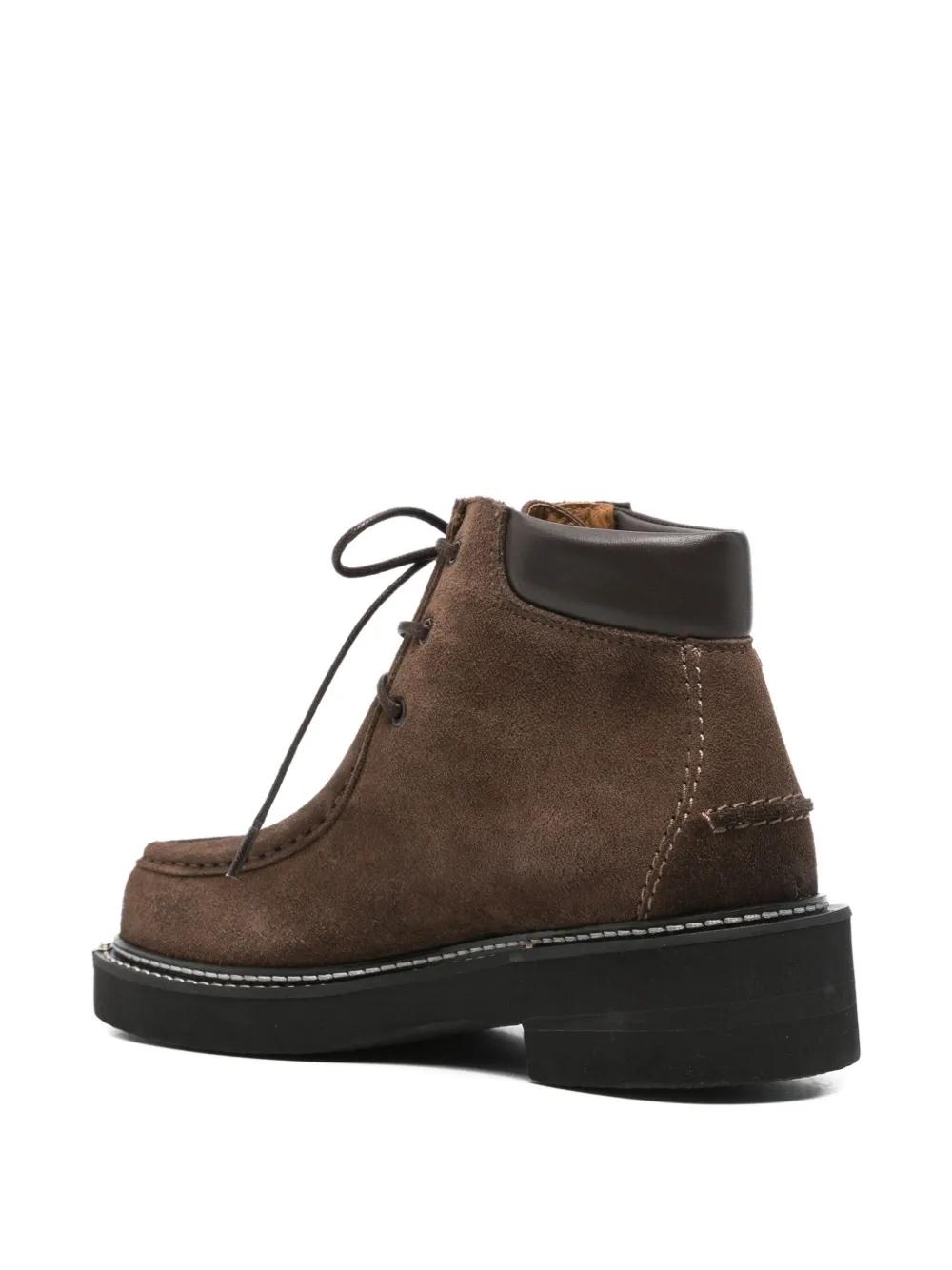 brown suede upper lace-up fastening round toe rubber sole low heel
