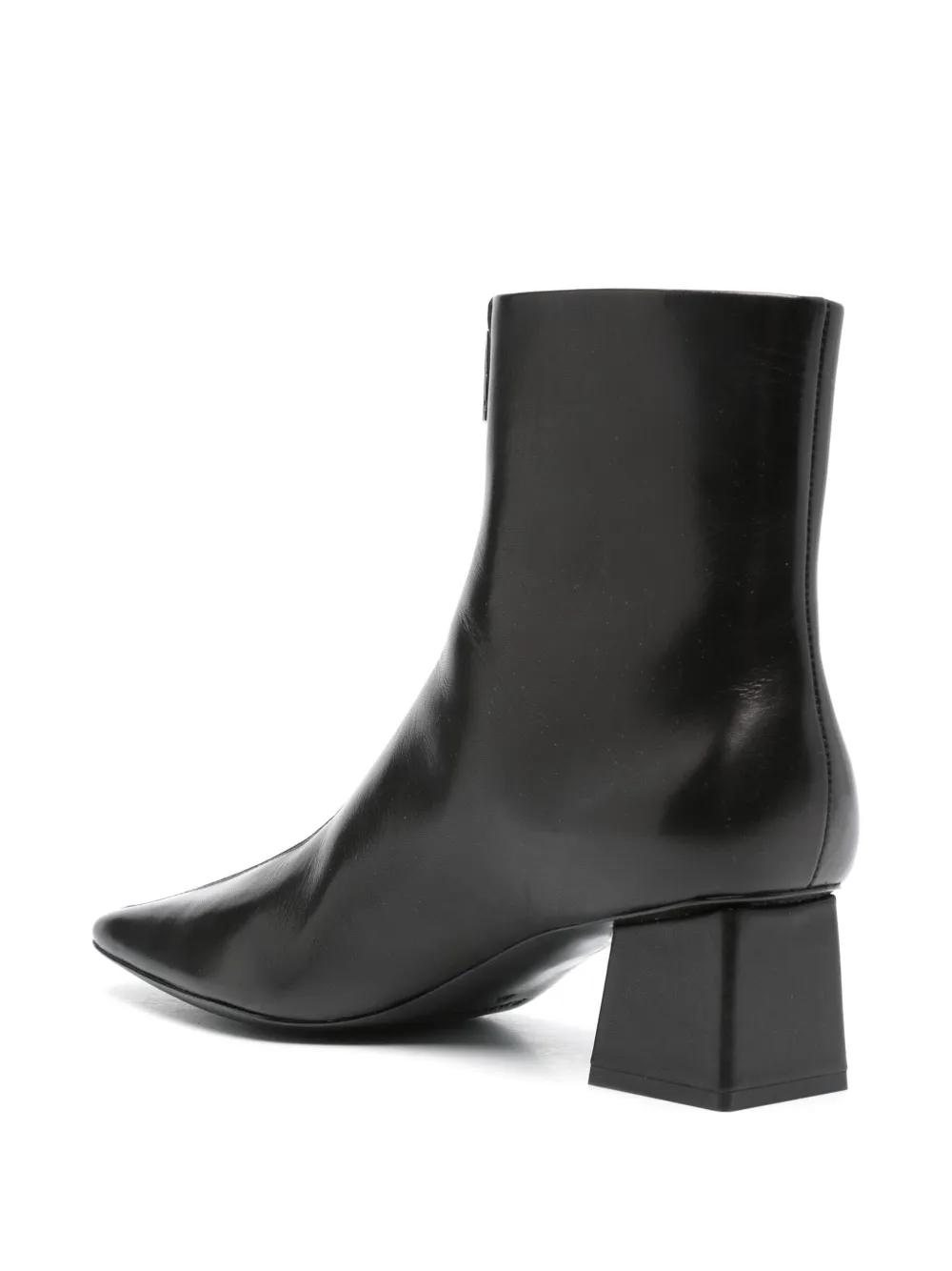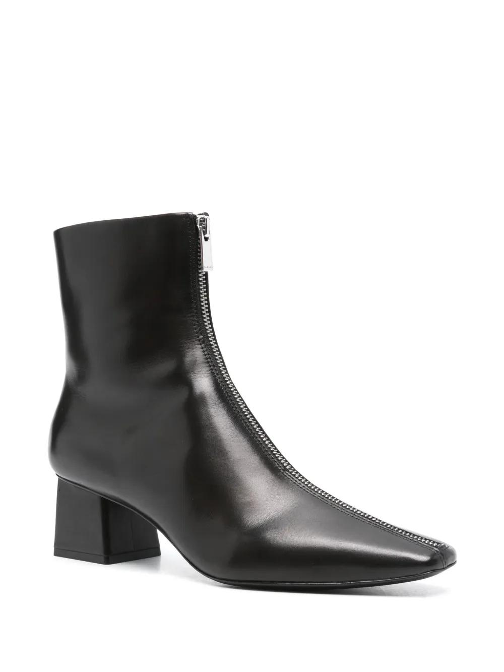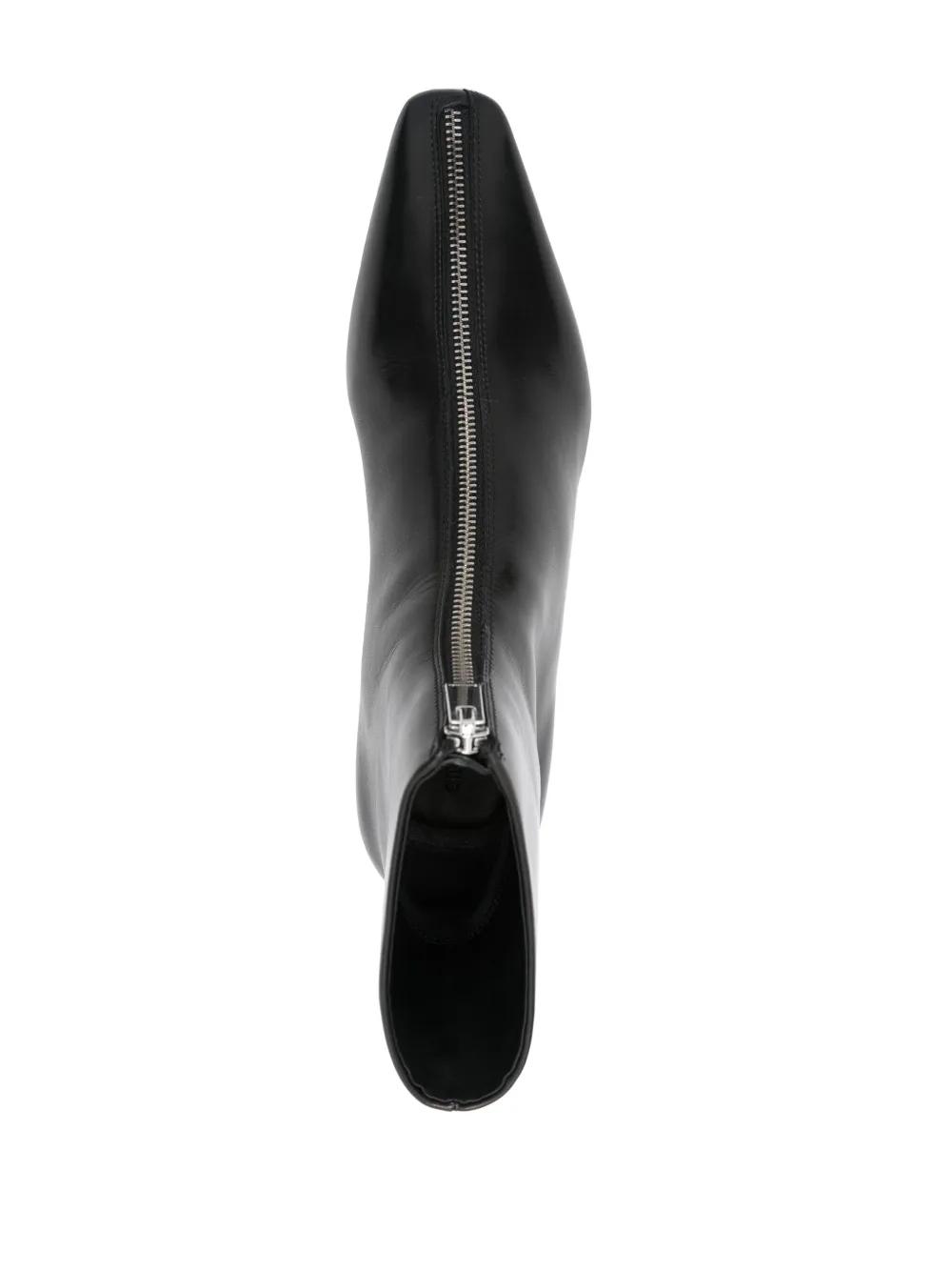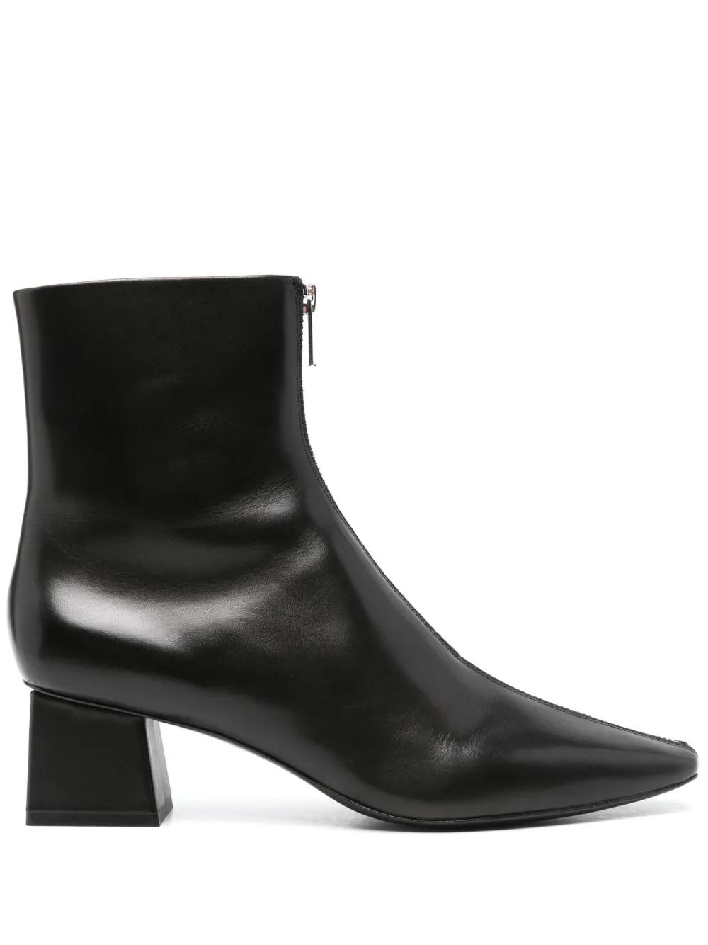 black calf leather front zip fastening 50mm low block heel square pointed toe branded leather insole leather lining ankle-length leather outsole