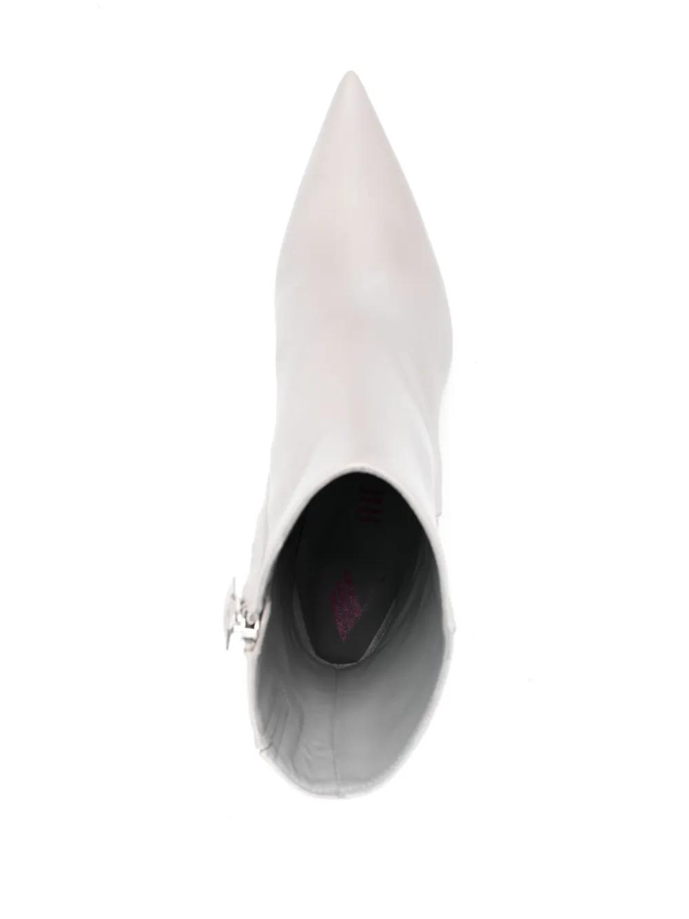 light grey calf leather leather pointed toe side zip fastening 19mm ankle-length high sculpted heel