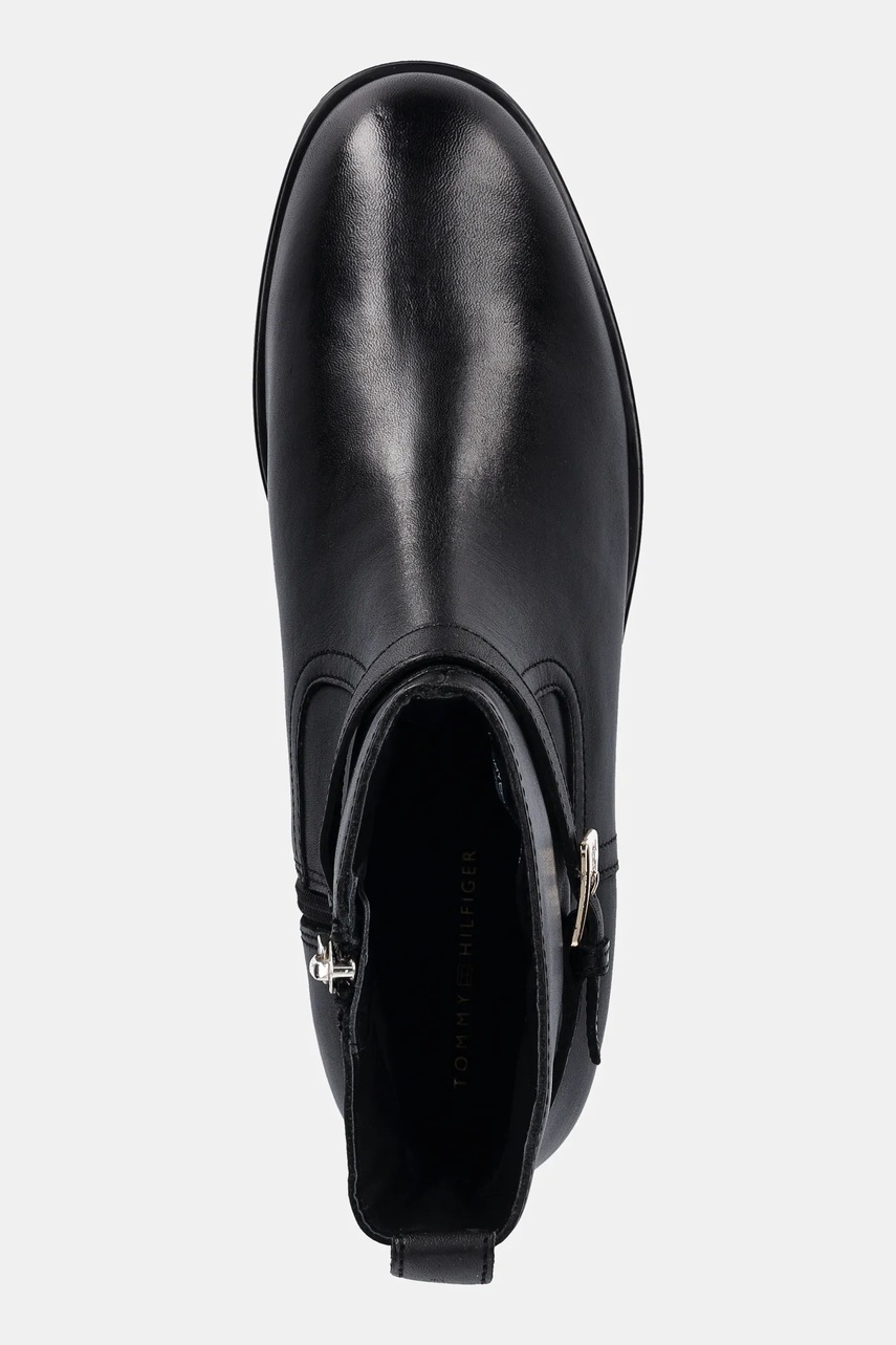 Tommy Hilfiger botki skórzane TH BUCKLE RIDING LEATHER BOOTIE damskie kolor czarny na płaskim obcasie FW0FW08781