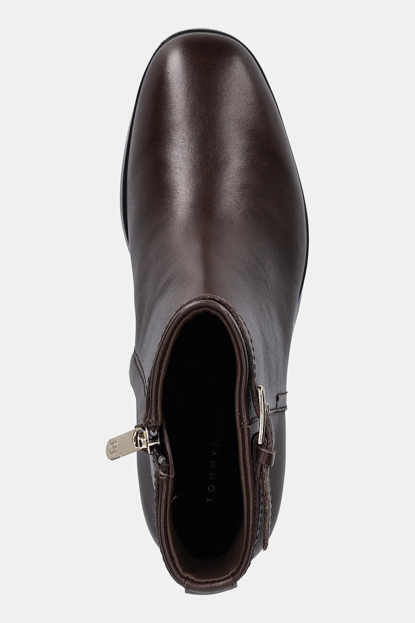 Tommy Hilfiger botki skórzane TH BUCKLE RIDING MID HEEL BOOTIE damskie kolor brązowy na słupku FW0FW08859