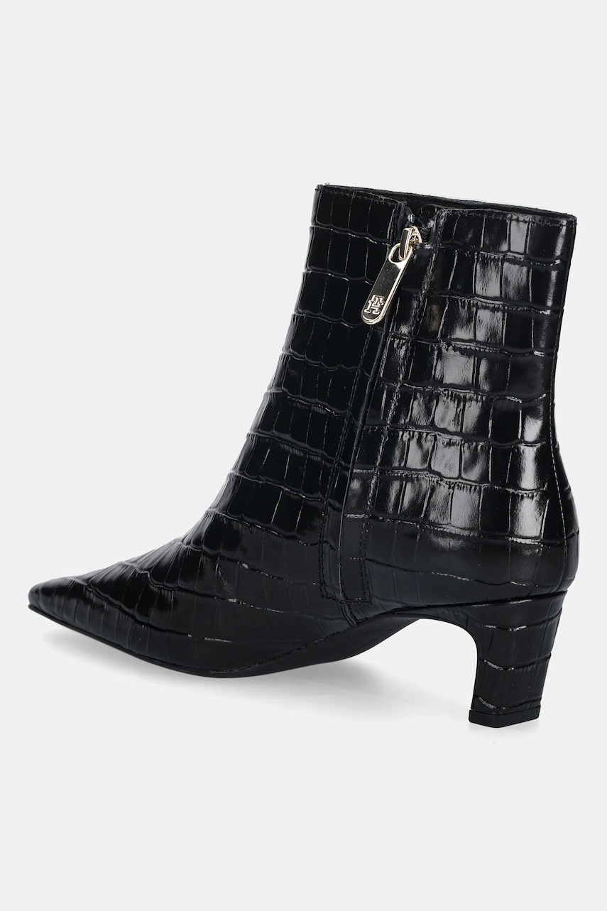 Tommy Hilfiger botki skórzane TH SQUARE TOE CROC KITTEN BOOTIE damskie kolor czarny na słupku FW0FW09162