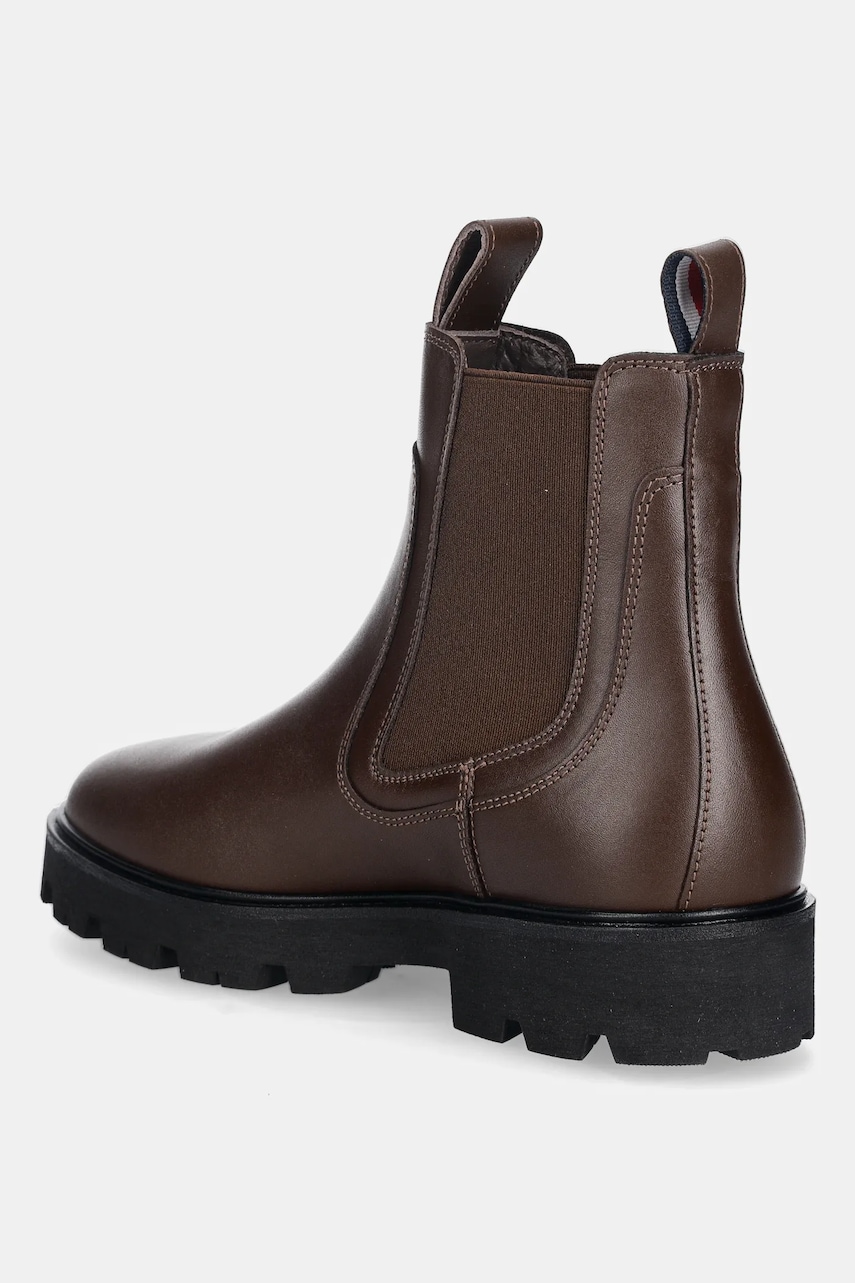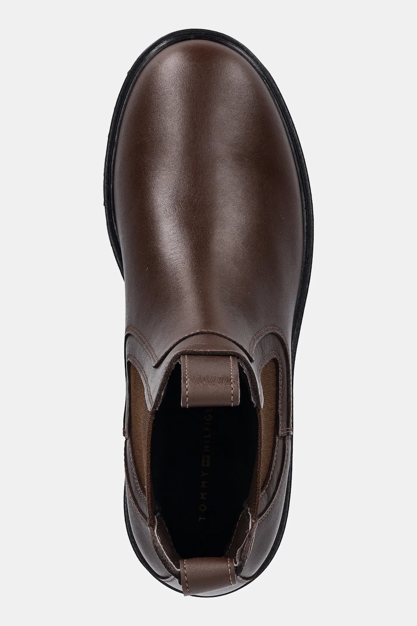 Tommy Hilfiger sztyblety skórzane TH LTHR LOW CHELSEA damskie kolor brązowy na płaskim obcasie FW0FW08775