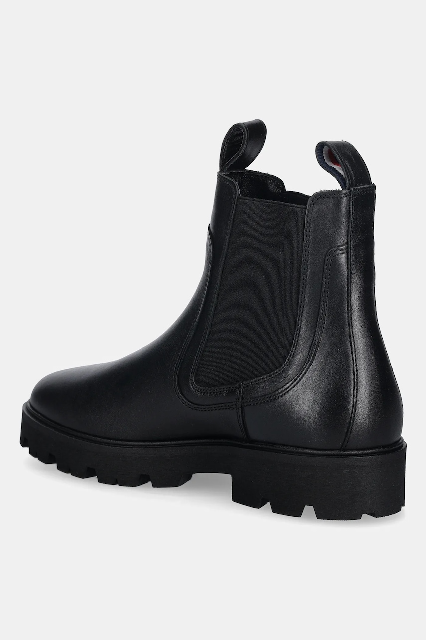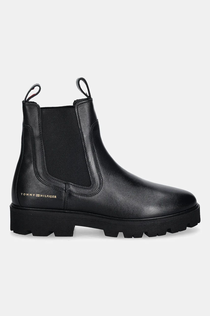 Tommy Hilfiger sztyblety skórzane TH LTHR LOW CHELSEA damskie kolor czarny na płaskim obcasie FW0FW08775