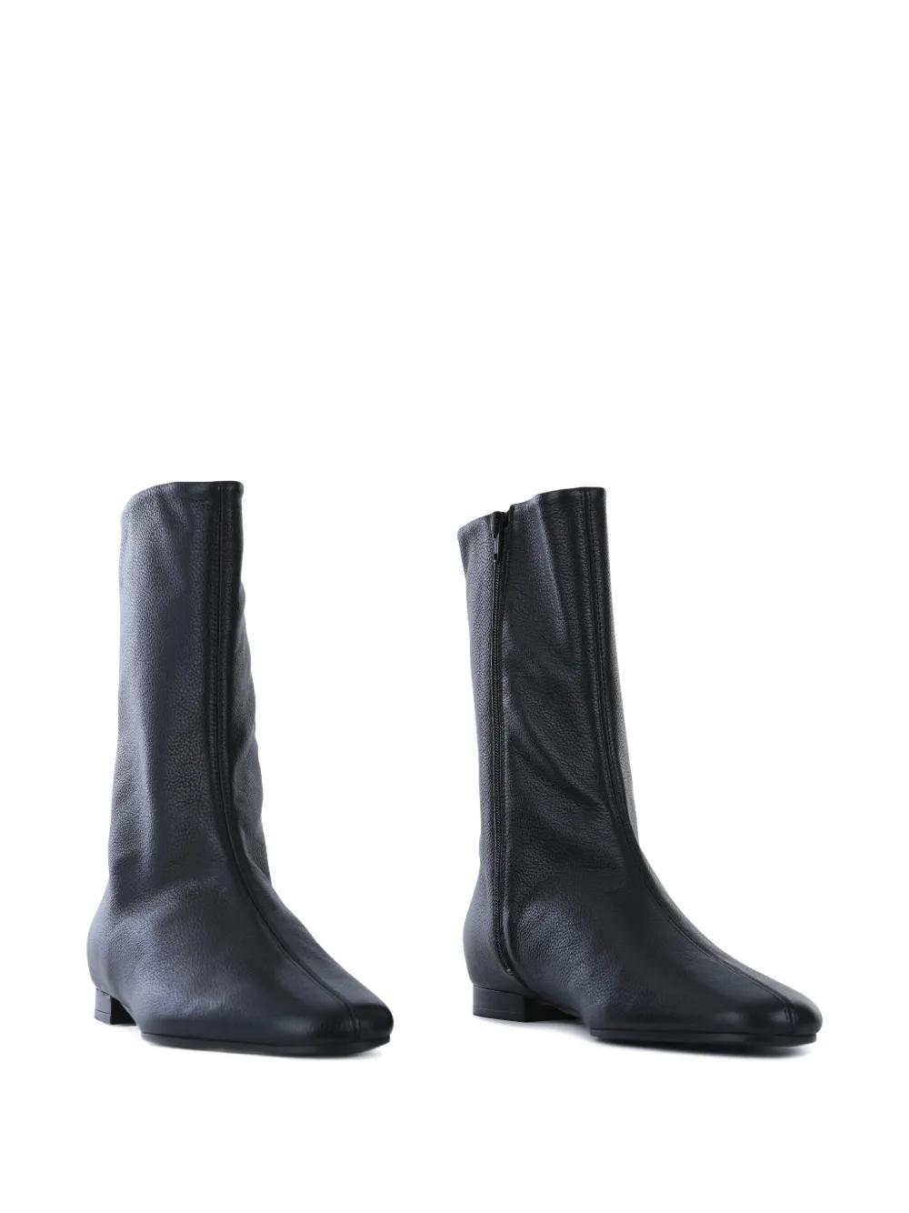 black calf suede panelled design pointed toe below-knee length slip-on style 60mm stiletto heel branded leather insole leather lining