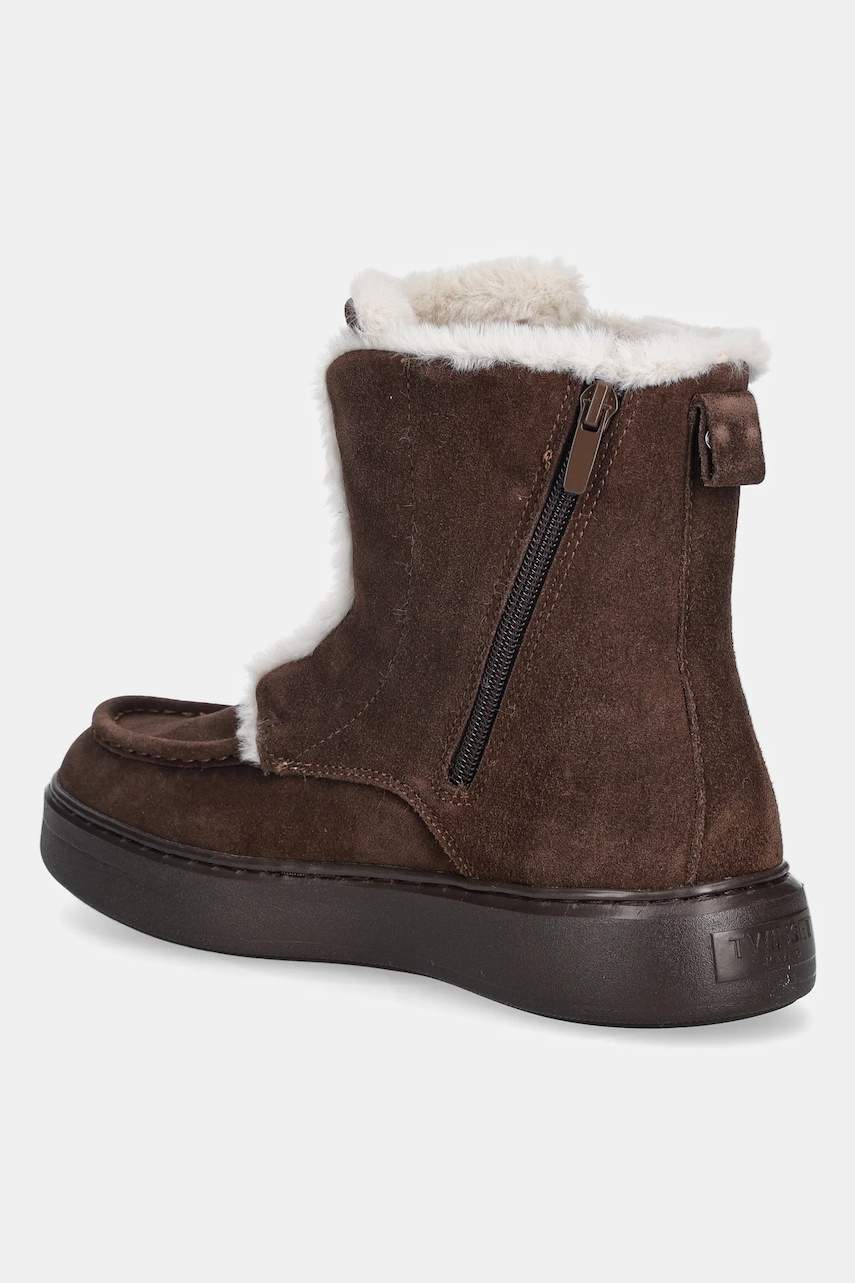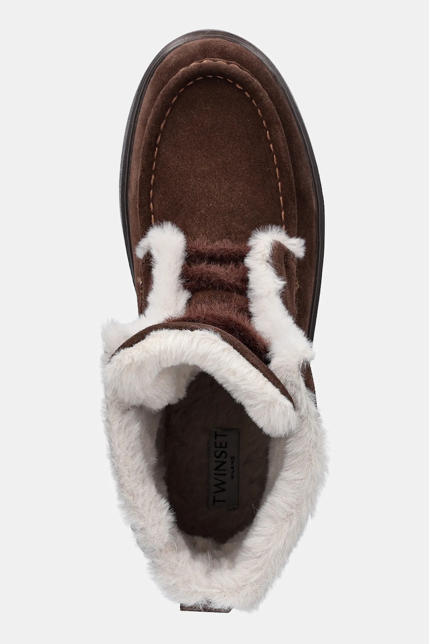 Twinset botki zamszowe damskie kolor brązowy na płaskim obcasie lekko ocieplone 252TGT01C