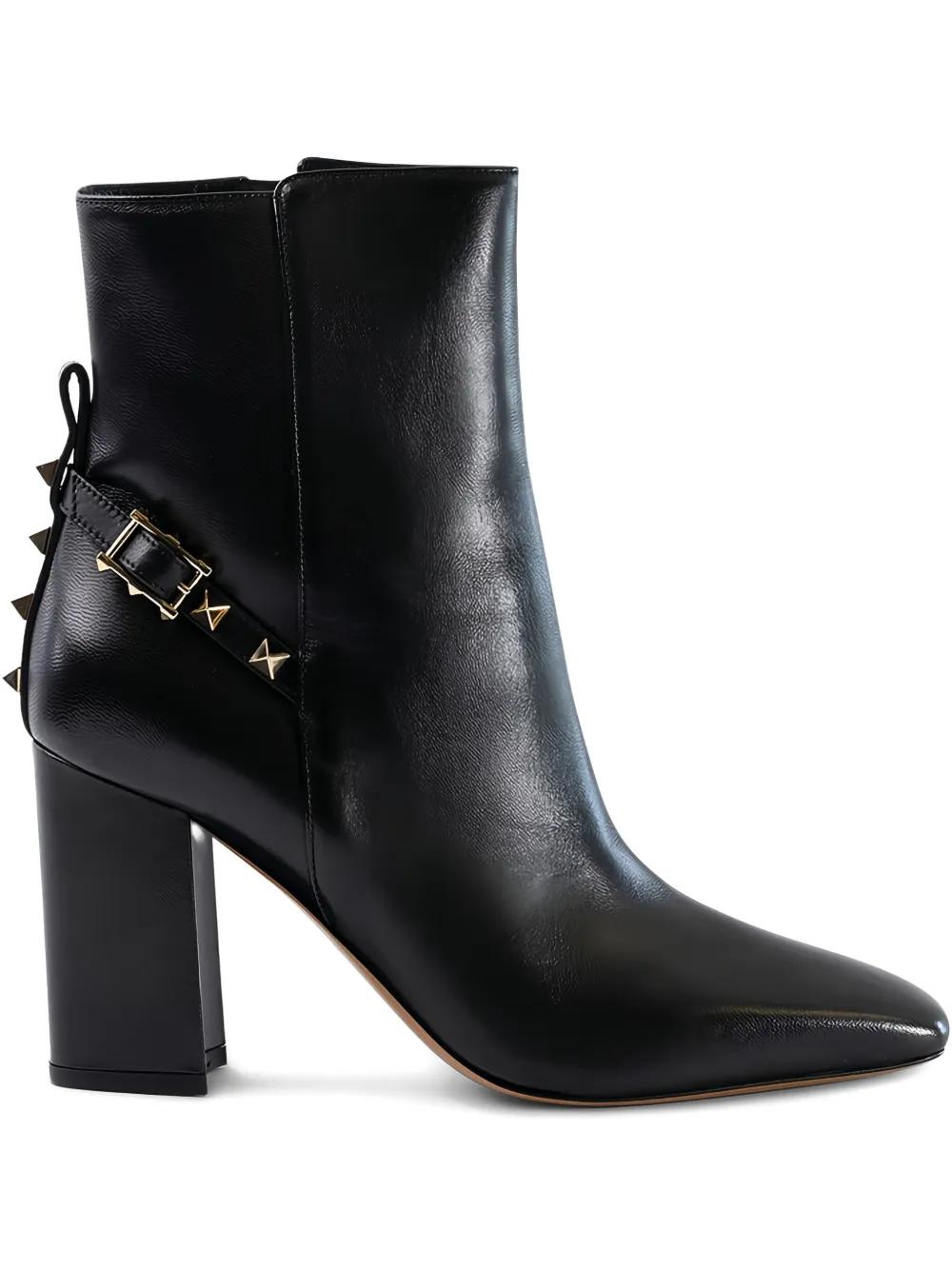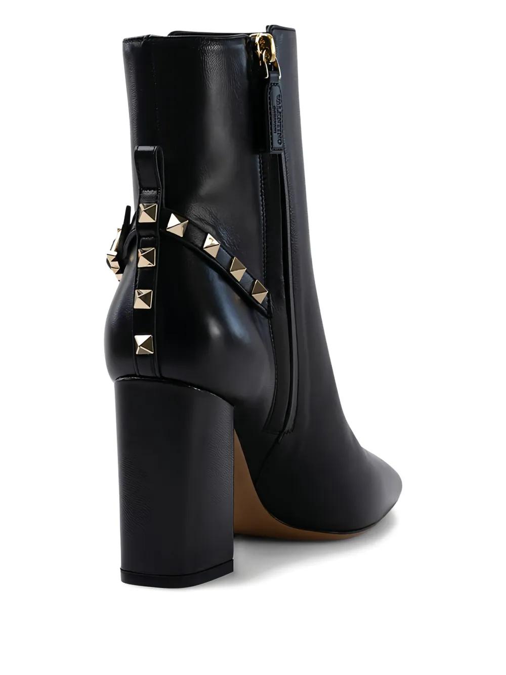 black gold-tone hardware studded embellishment side zip fastening block heel buckle-fastening strap