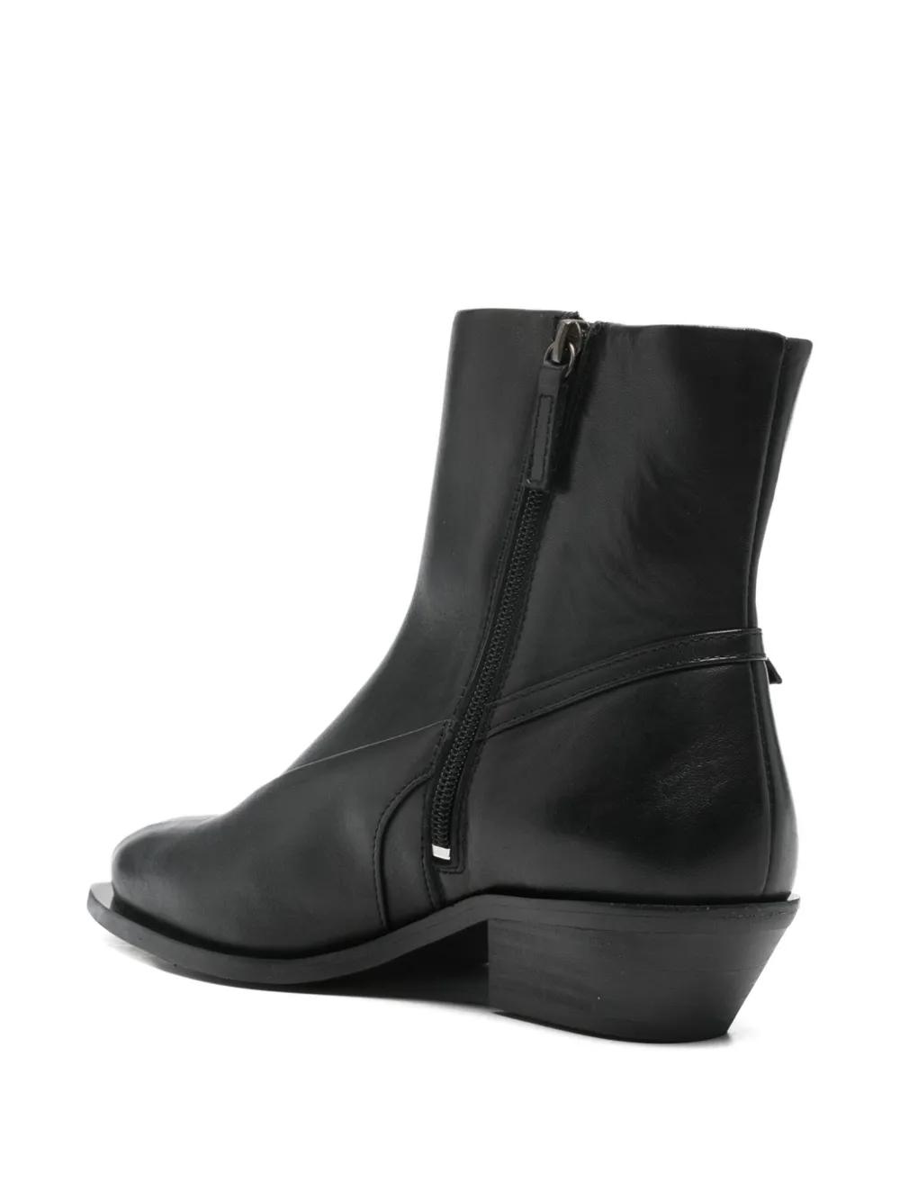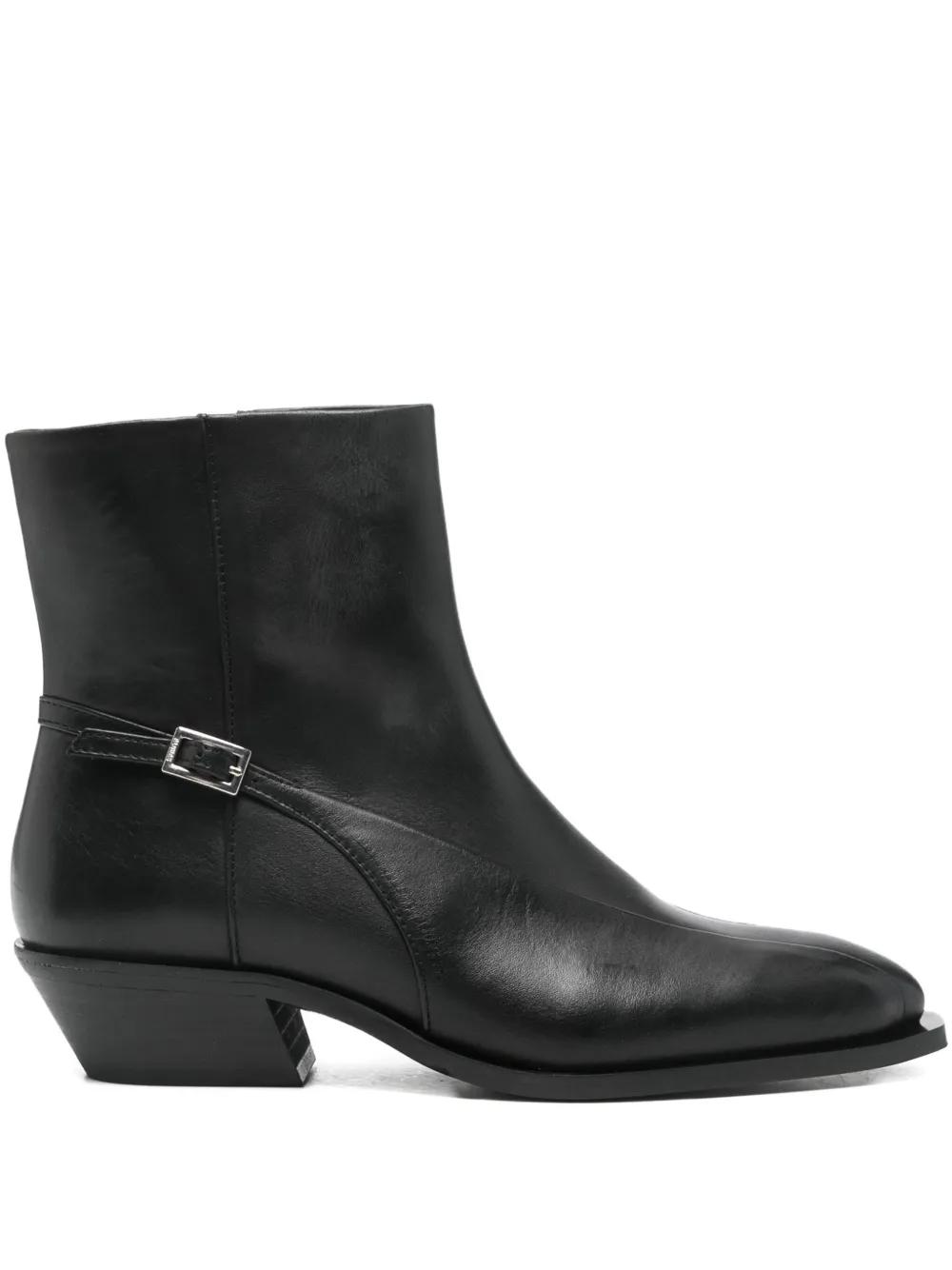 black side zip fastening buckle-fastening strap pointed toe Cuban heel pull-on style