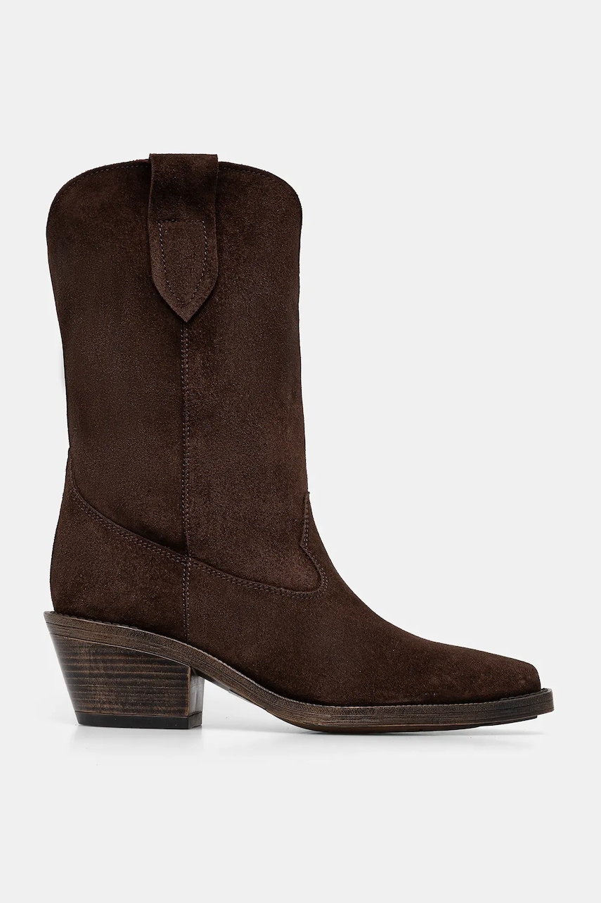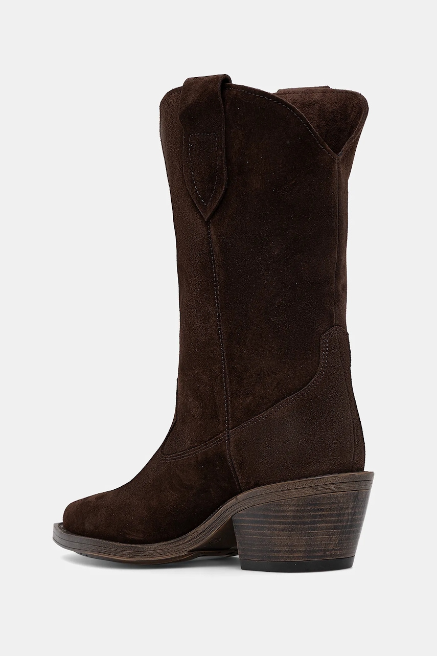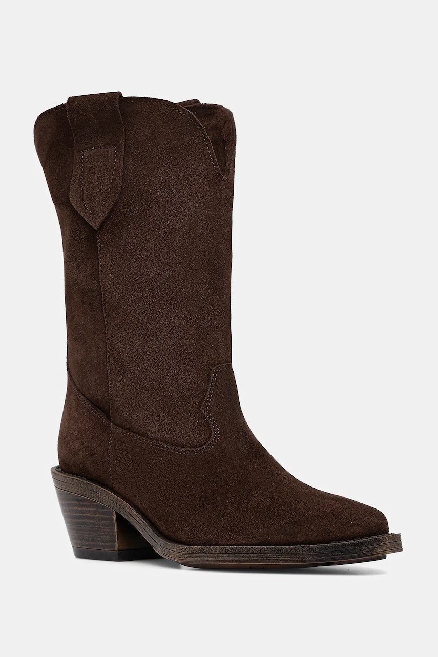 Answear.LAB botki zamszowe kolor brązowy na słupku