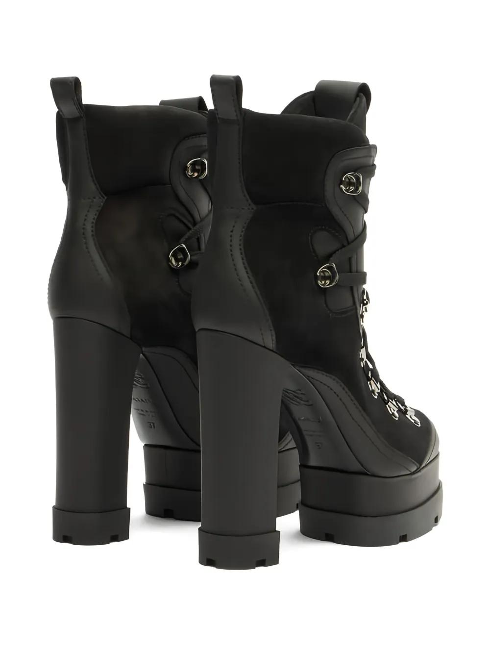 black lace-up fastening platform sole block heel pull tab metal eyelets