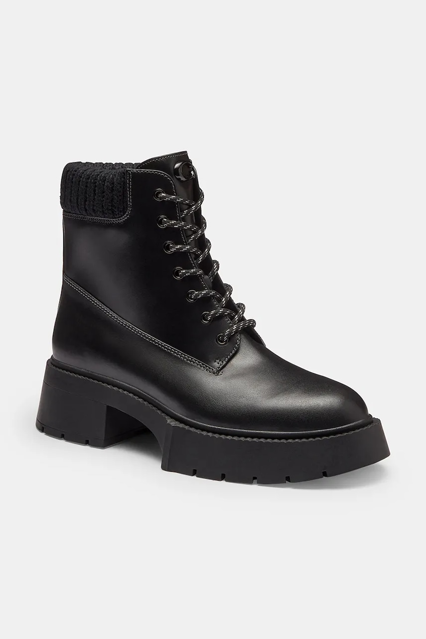 Coach botki skórzane Leah Platform damskie kolor czarny na słupku CCH88