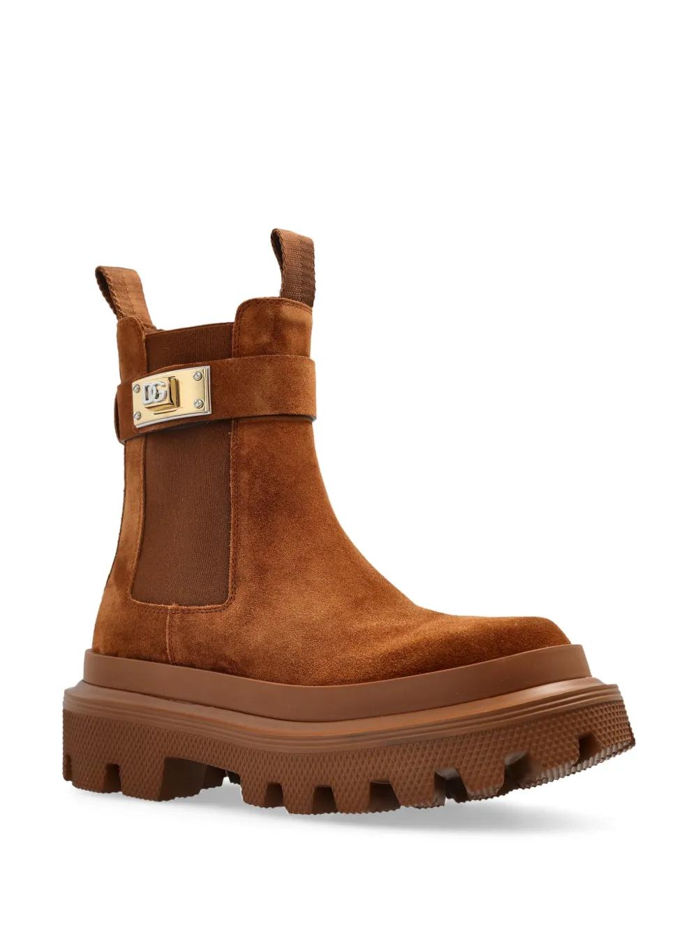 brown suede platform sole elastic side panels pull-tab tongue pull-tab at the heel branded insole round toe