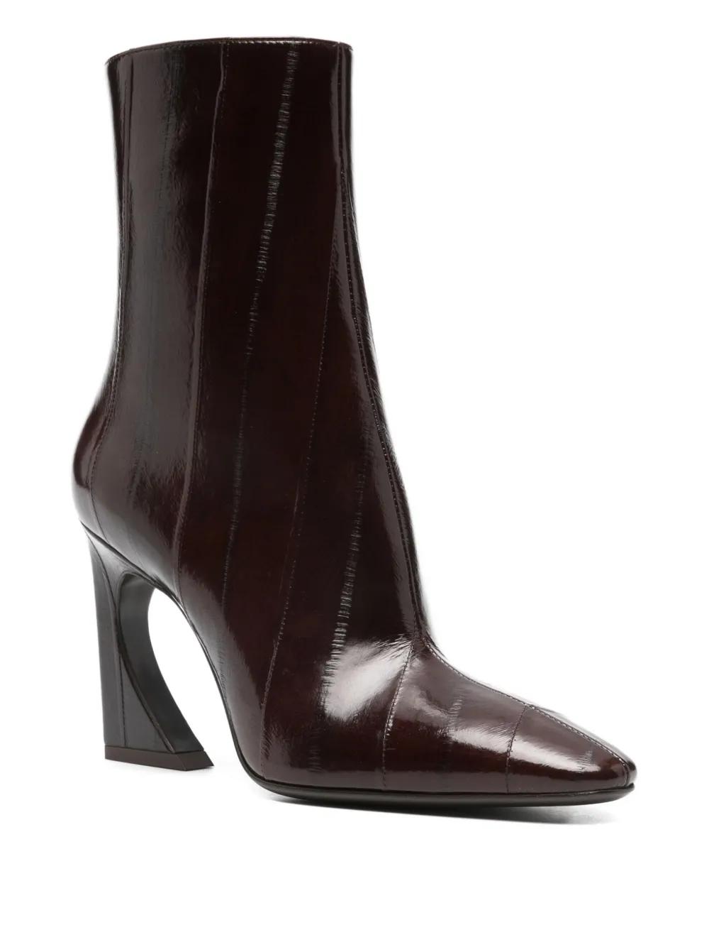 brown pointed toe heart-cut heel zip fastening gold-tone details
