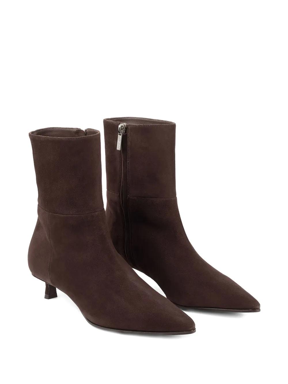chocolate zip fastening pointed toe logo detail at the rear leather upper rubber sole