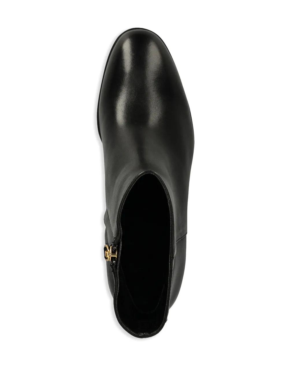 black leather side zip fastening mid block heel logo patch to the rear round toe leather sole ankle-length