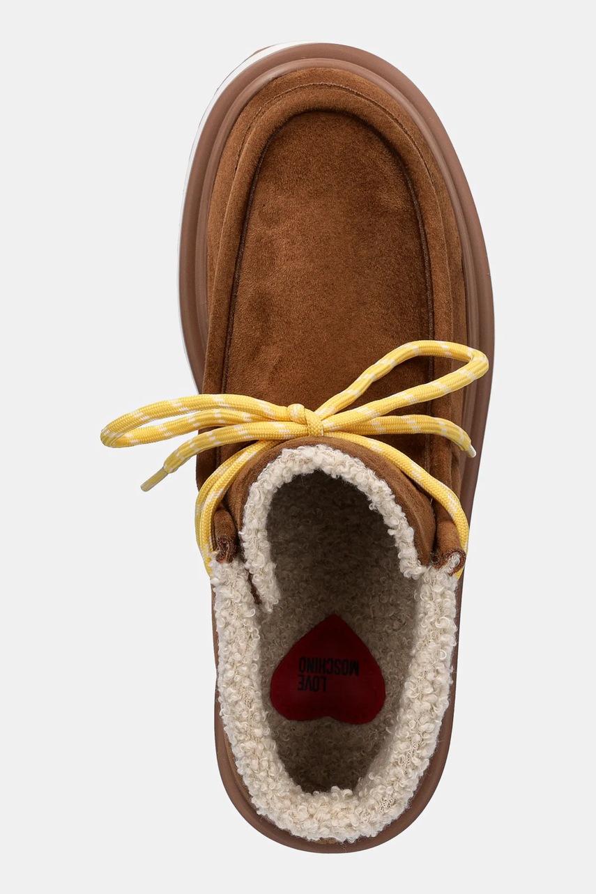 Love Moschino botki damskie kolor brązowy na platformie lekko ocieplone JA21116L0NJAW210