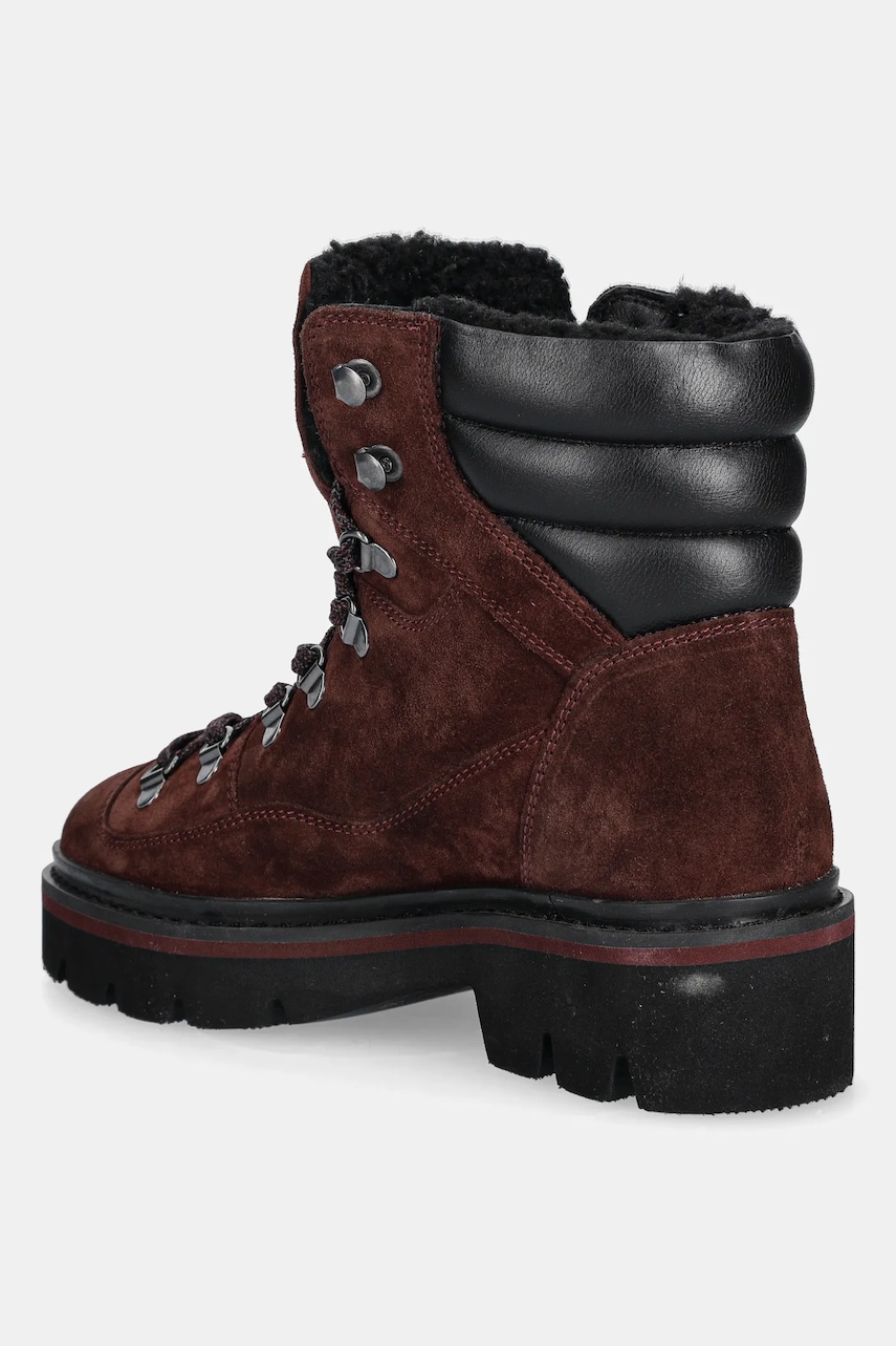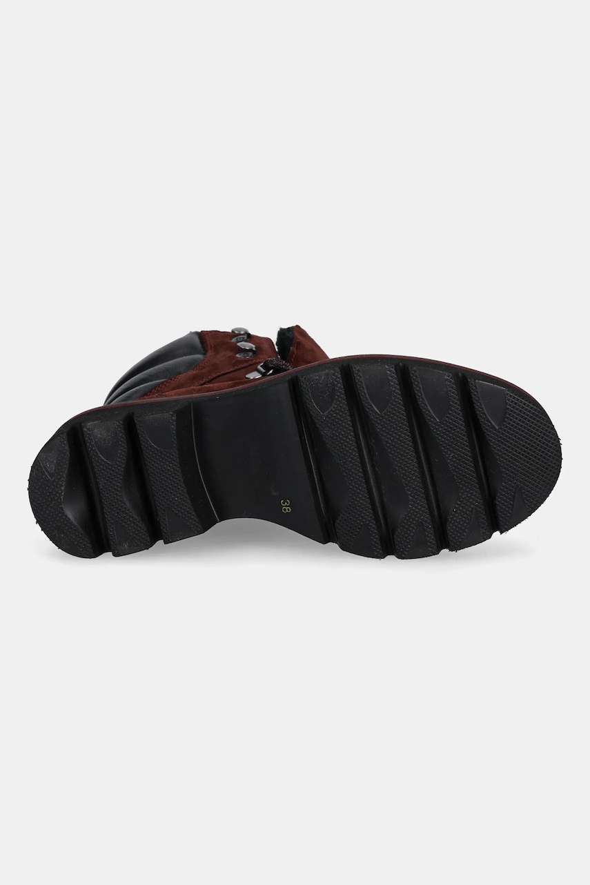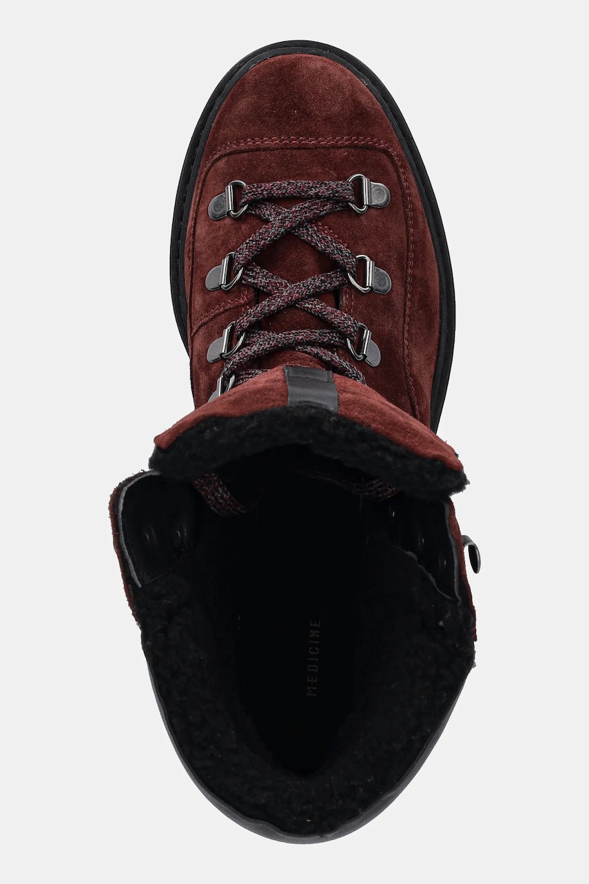 Medicine botki skórzane damskie kolor bordowy na platformie
