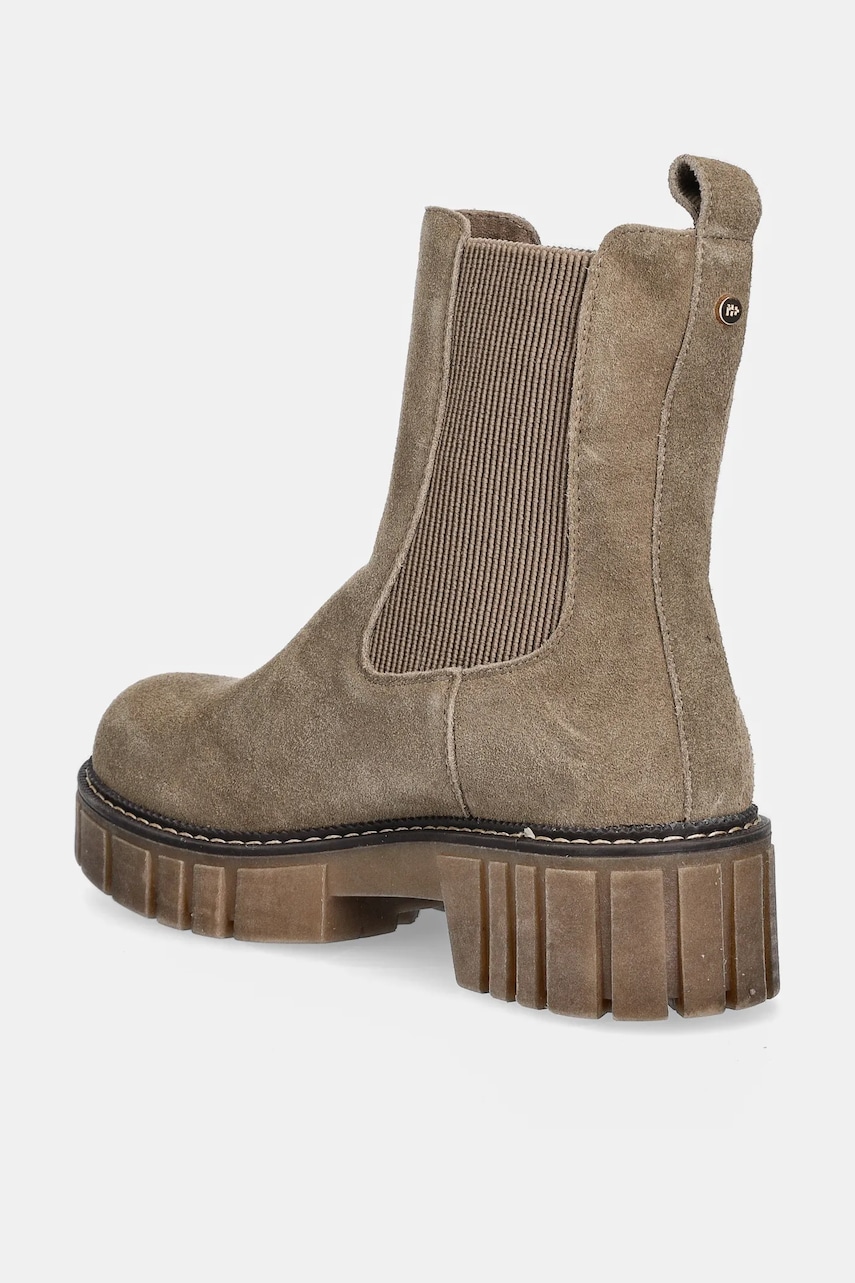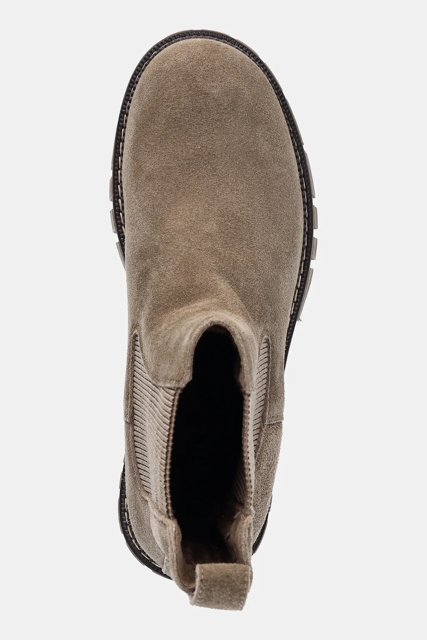 - Okrągły, usztywniony nosek. - Usztywniony zapiętek. - Gumowa podeszwa. - Elastyczna wstawka zapewnia indywidualne dopasowanie. - Komfortowa wkładka. - Model wykonany ze skóry zamszowej. - Model na platformie. - Obwód cholewki: 26,5 cm. - Wysokość cholewki: 16,5 cm. - Wysokość obcasa: 5 cm. - Długość wkładki wynosi: 24,5 cm. - Wymiary podane dla rozmiaru: 38.
