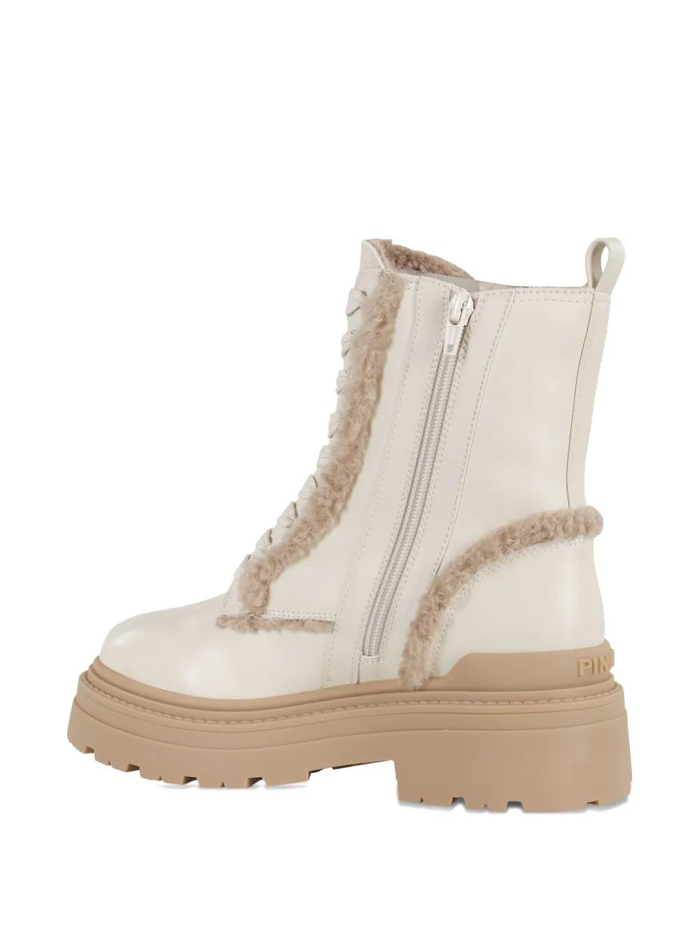 PINKO Mia lace-up teddy-trimmed boots - Neutrals