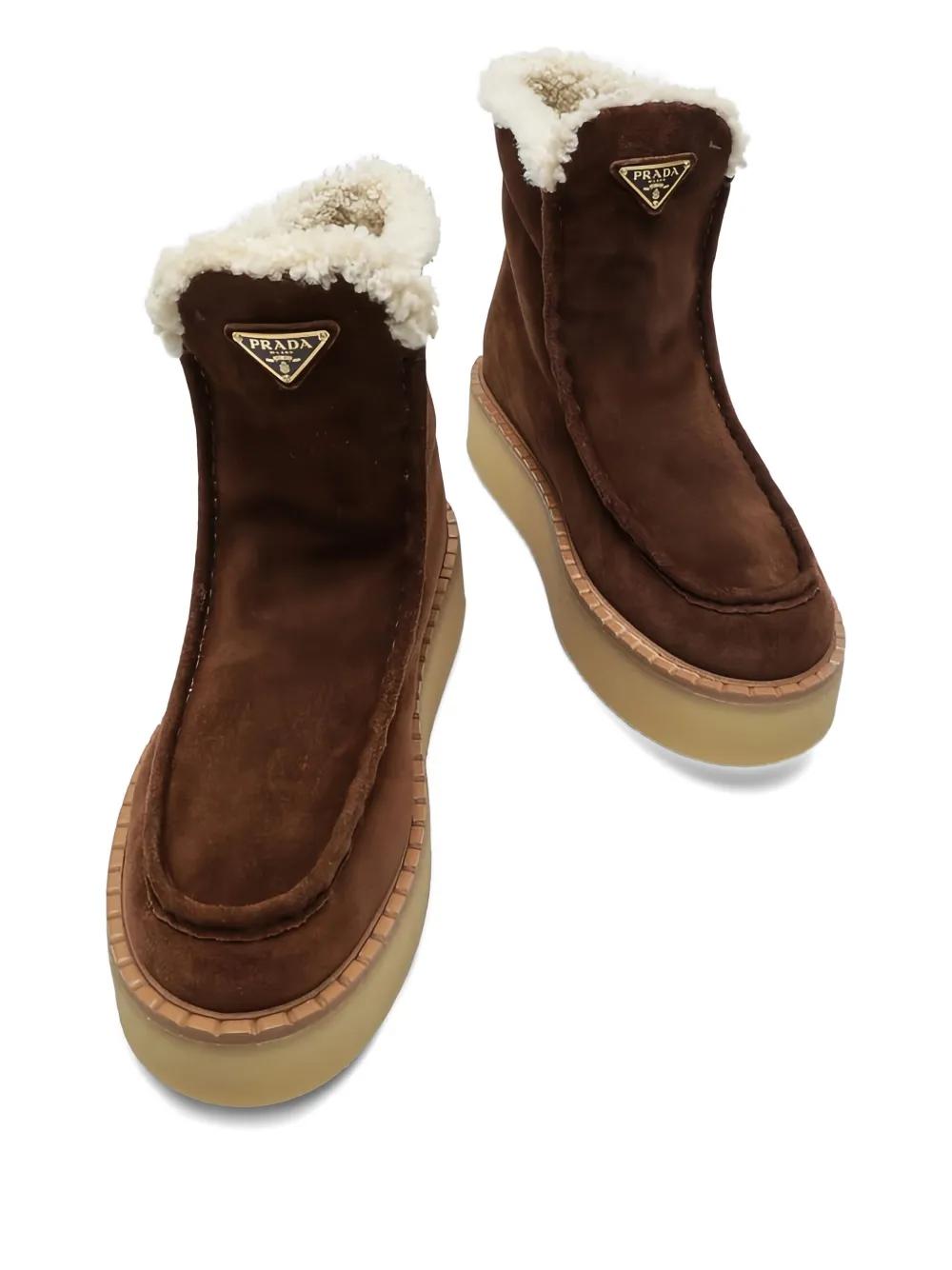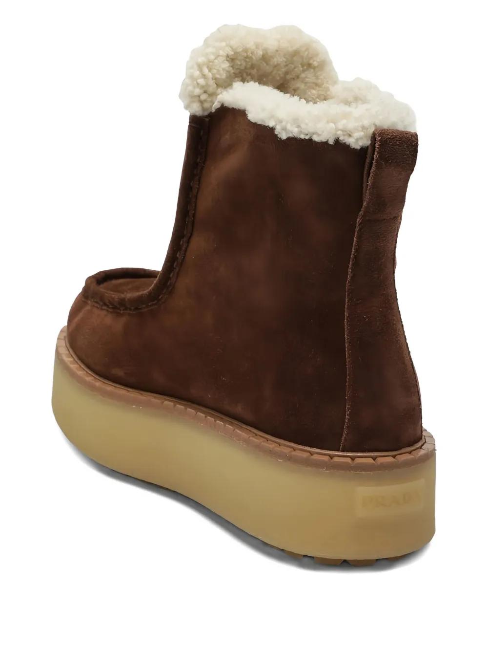 cocoa brown shearling trim platform sole logo plaque pull tab ridged sole
