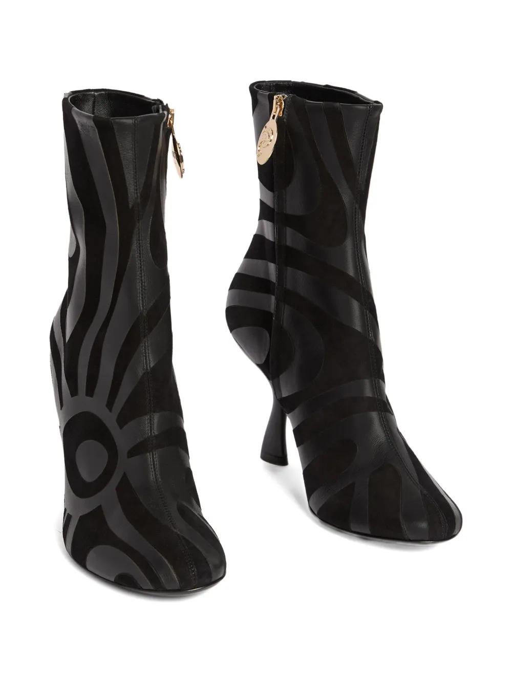 black marmo print heeled zip fastening gold-tone hardware leather upper