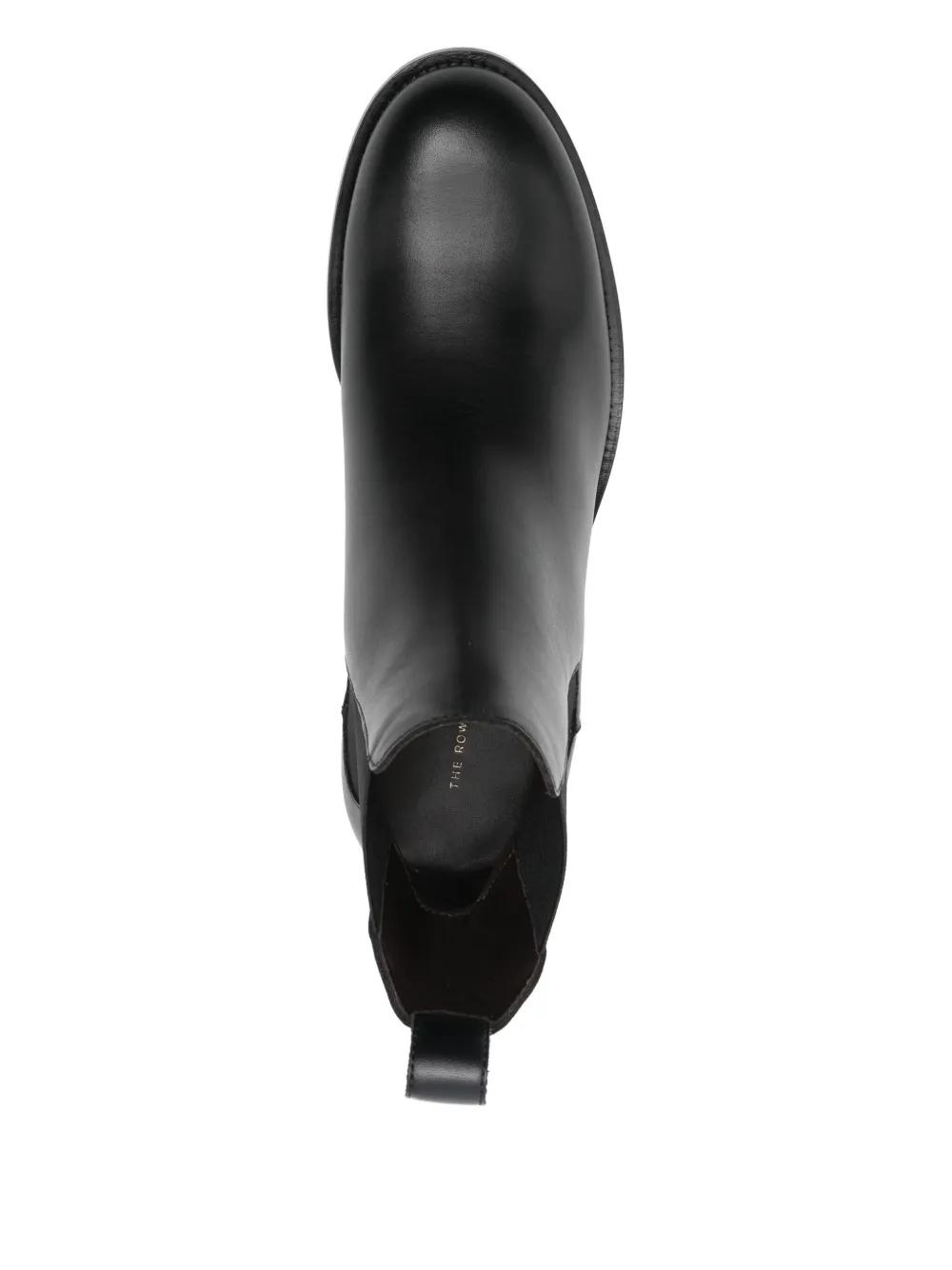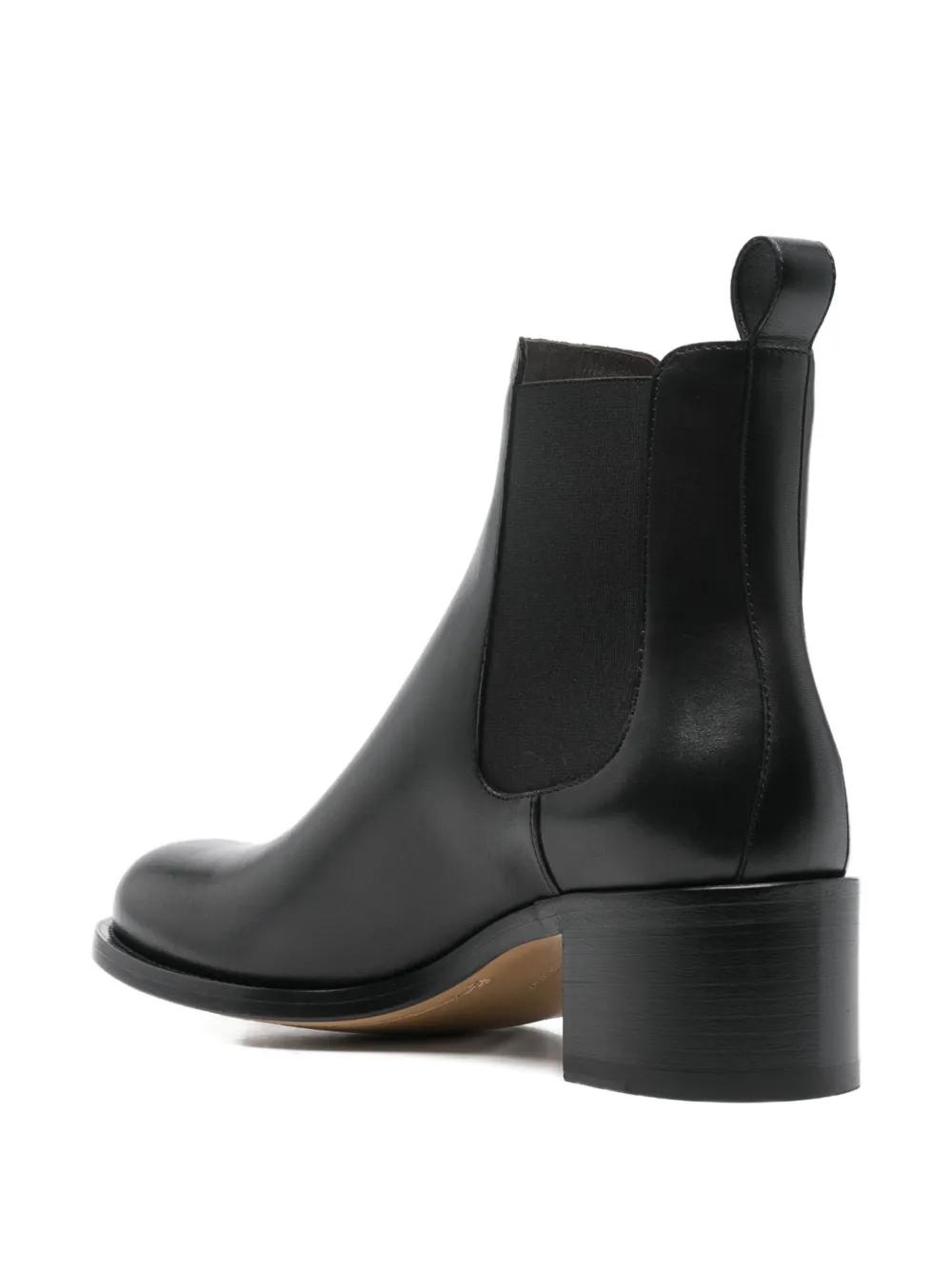 black block heel pull-tab at the rear elasticated side panels round toe ankle-length This piece comes complete with a protective dust bag.