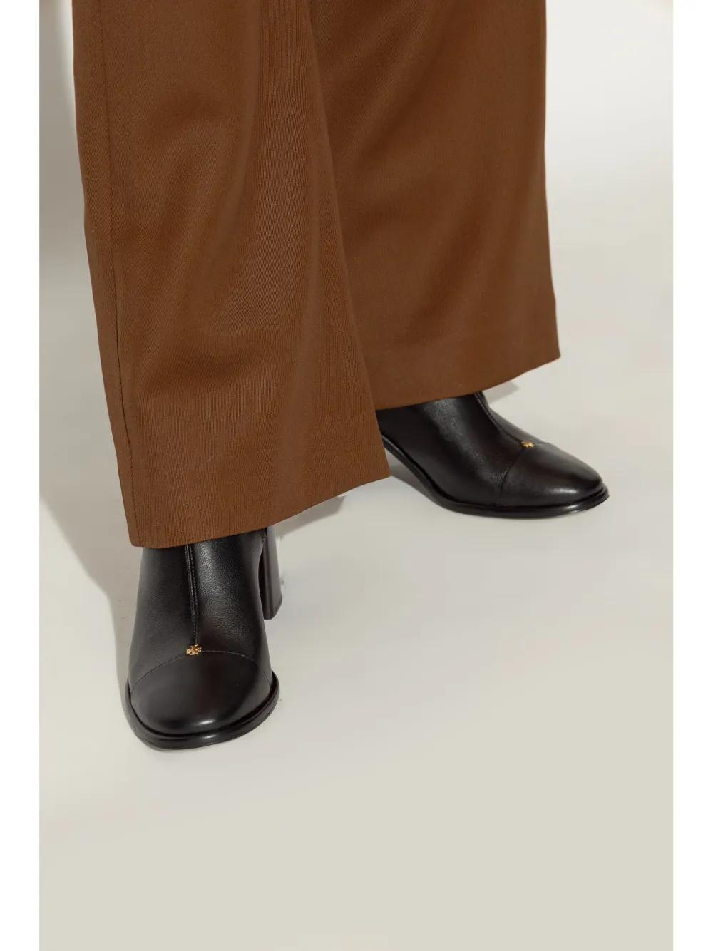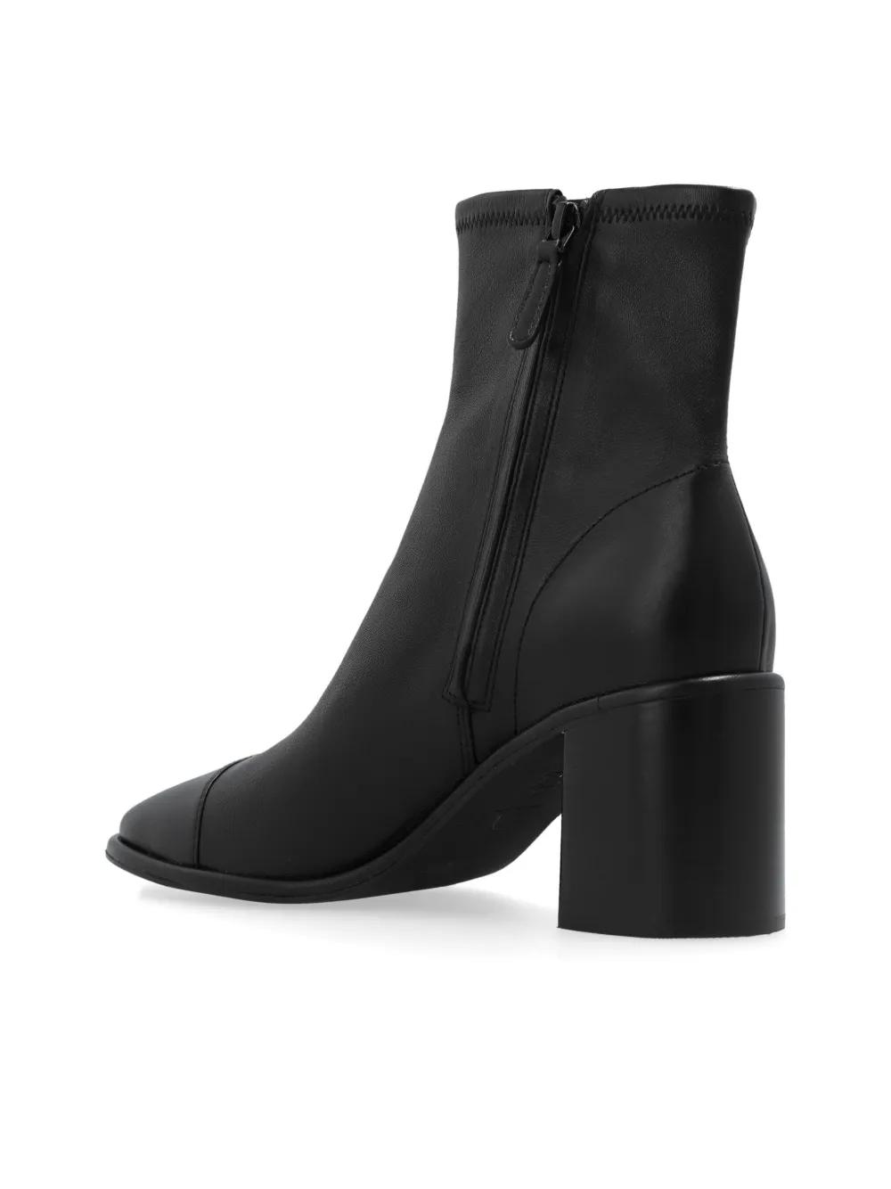 black leather smooth grain side zip fastening 70mm mid block heel ankle-length appliqué logo round toe leather sole