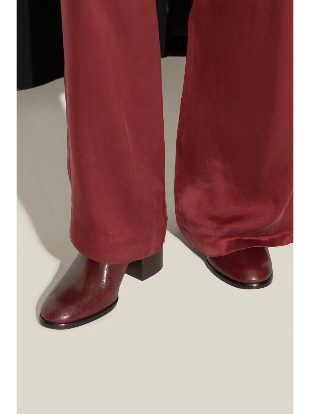 burgundy goatskin side zip fastening 90mm block heel ankle-length signature Double T motif almond toe branded leather insole leather sole