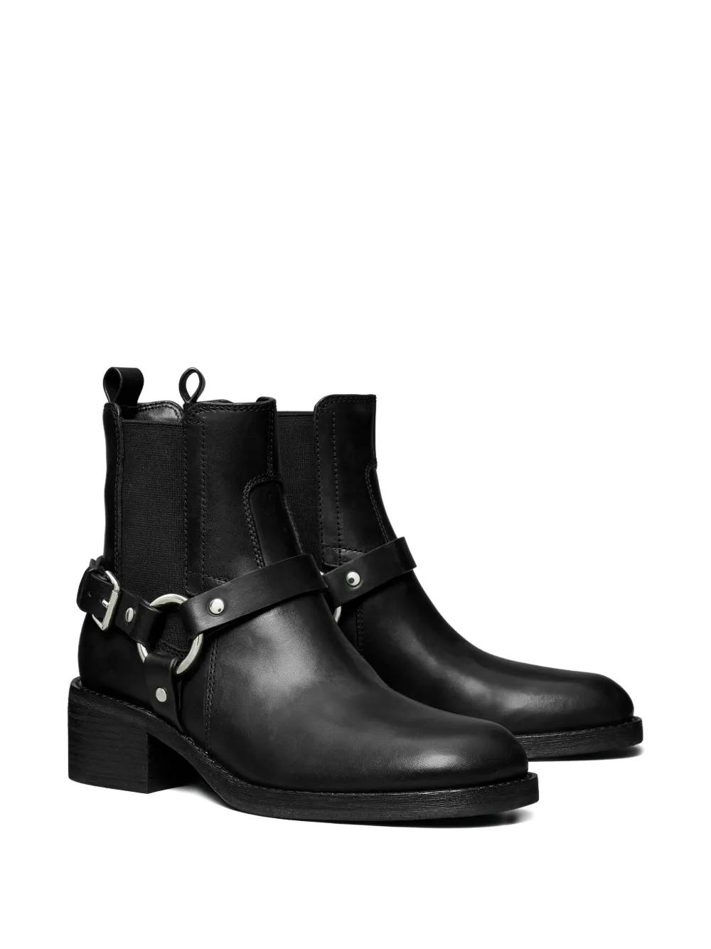 brown pull tab at rear topstitch detailing ridged sole round toe