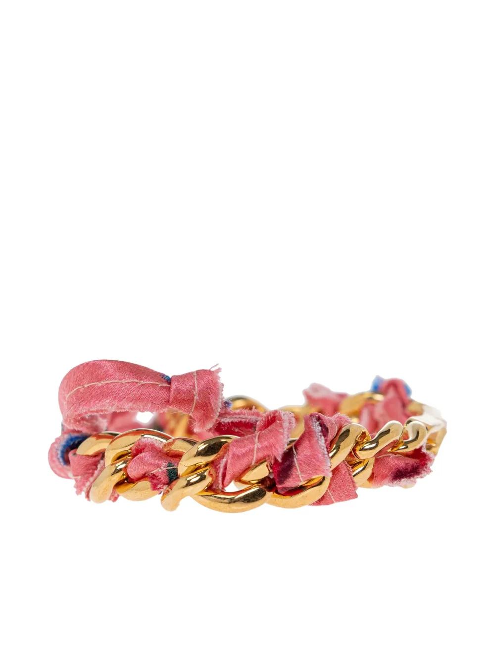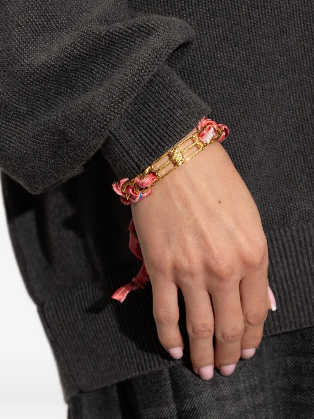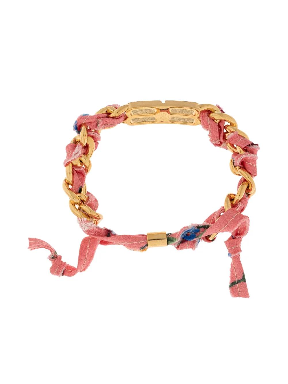 pink logo embellishment chain detail tie fastening gold-tone hardware