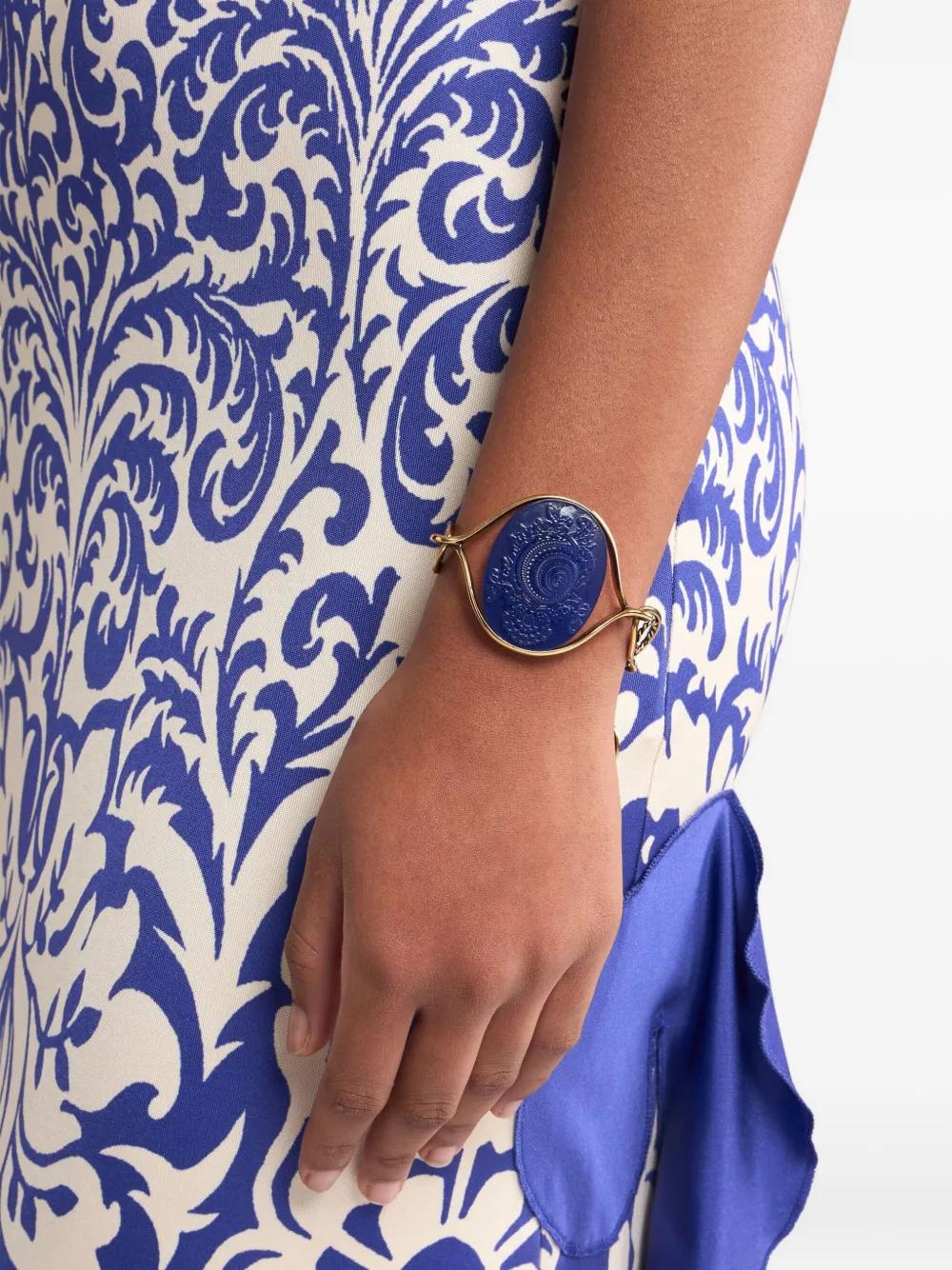 gold-tone enamel detail logo detail Normal everyday use and external agents may reduce the lustre of gemstones and gold surfaces. To maintain, use specific, non-abrasive products specially meant for cleaning jewellery.