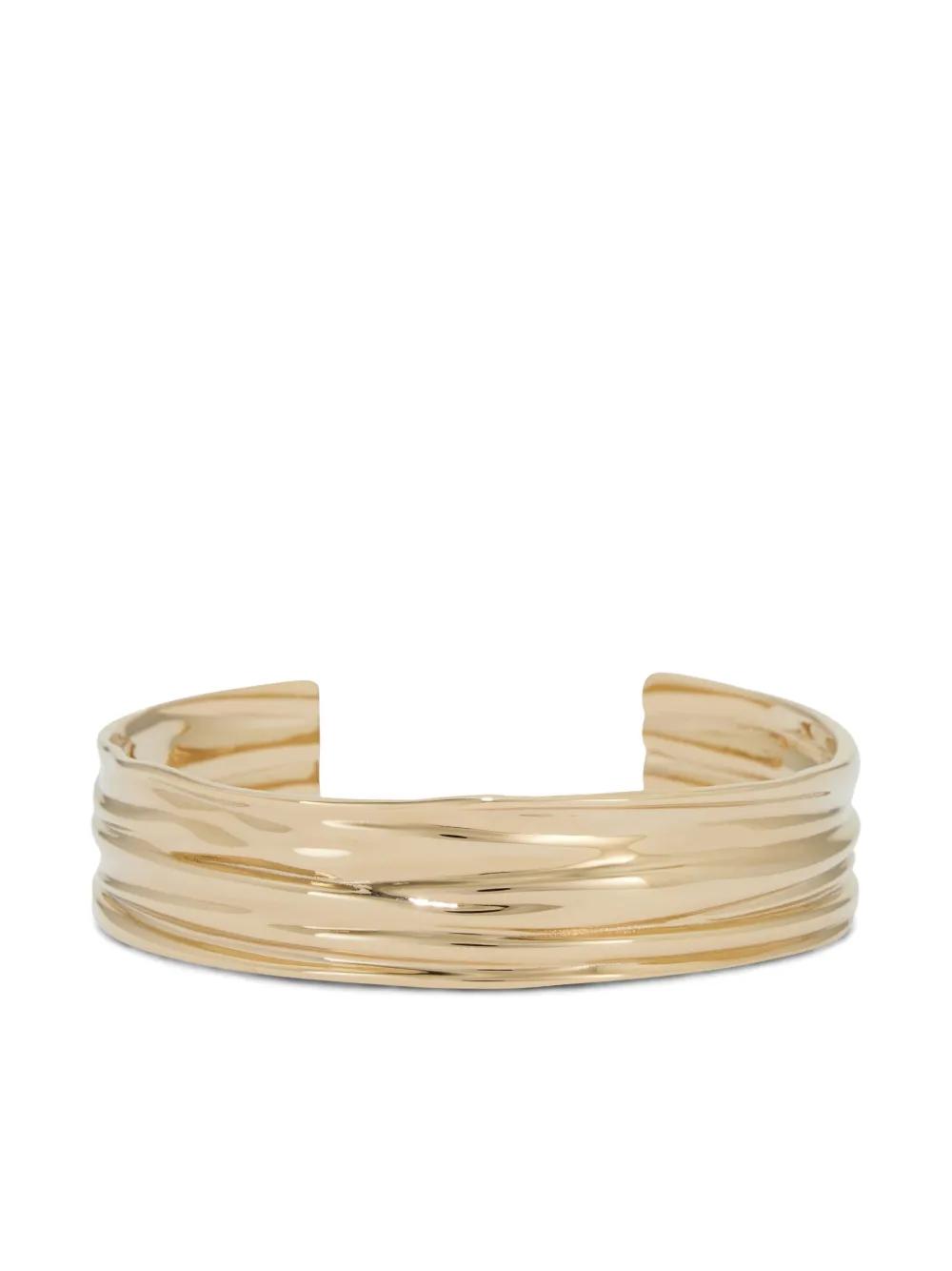 gold-tone multiple twisted bands open cuff design engraved logo polished finish elegant silhouette