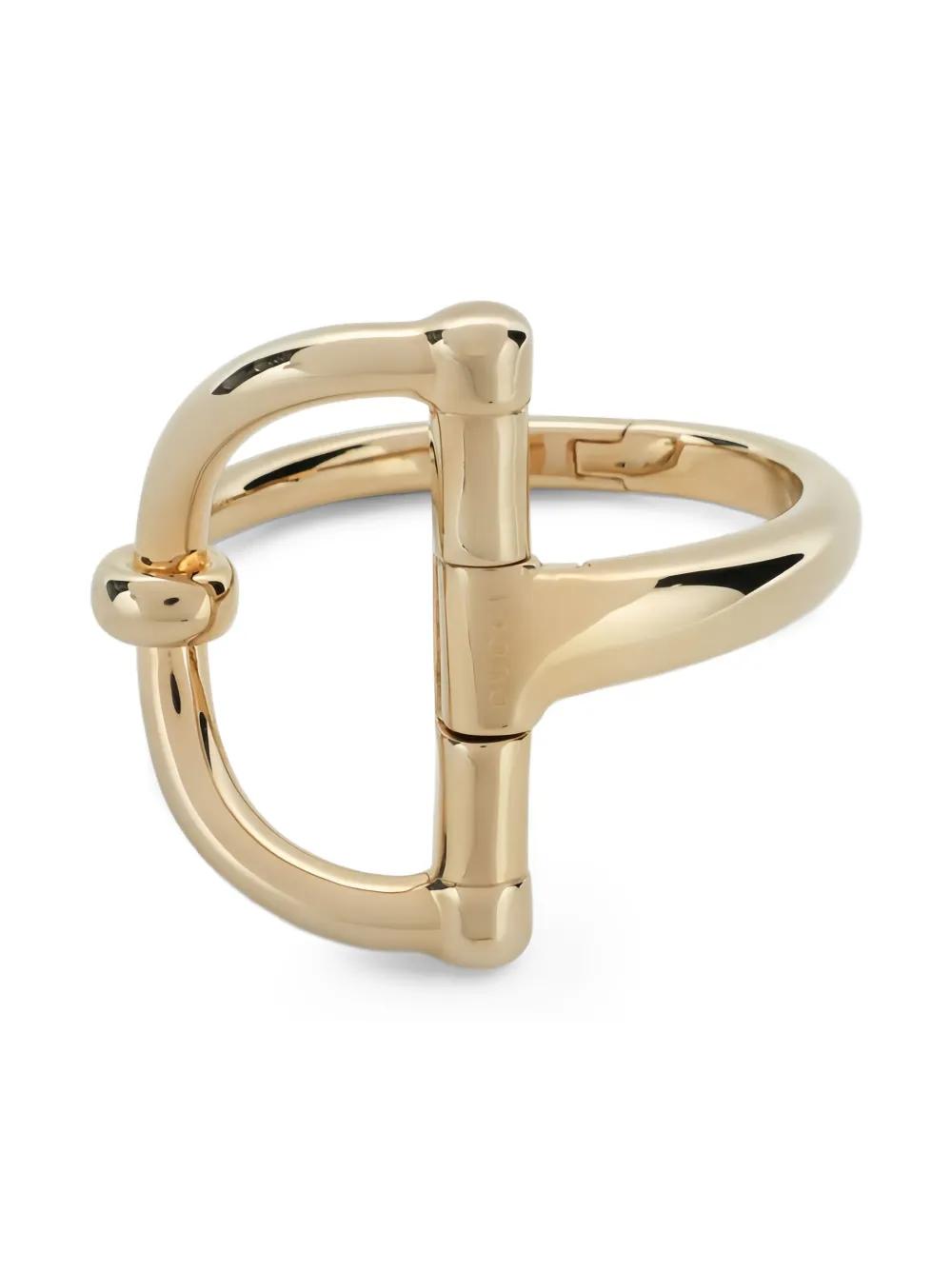 shy gold horsebit detail slip-on style polished finish engraved logo hinged design