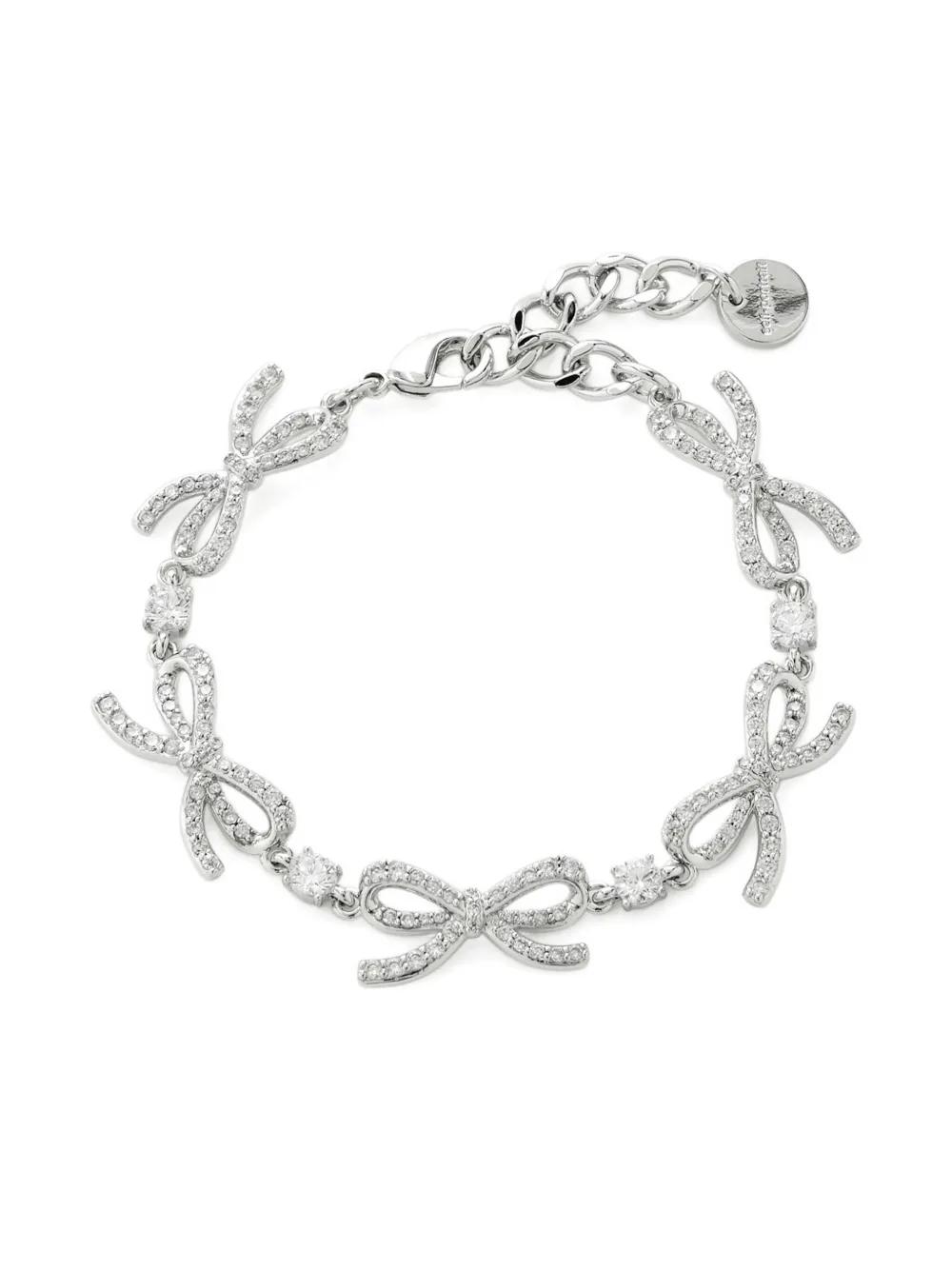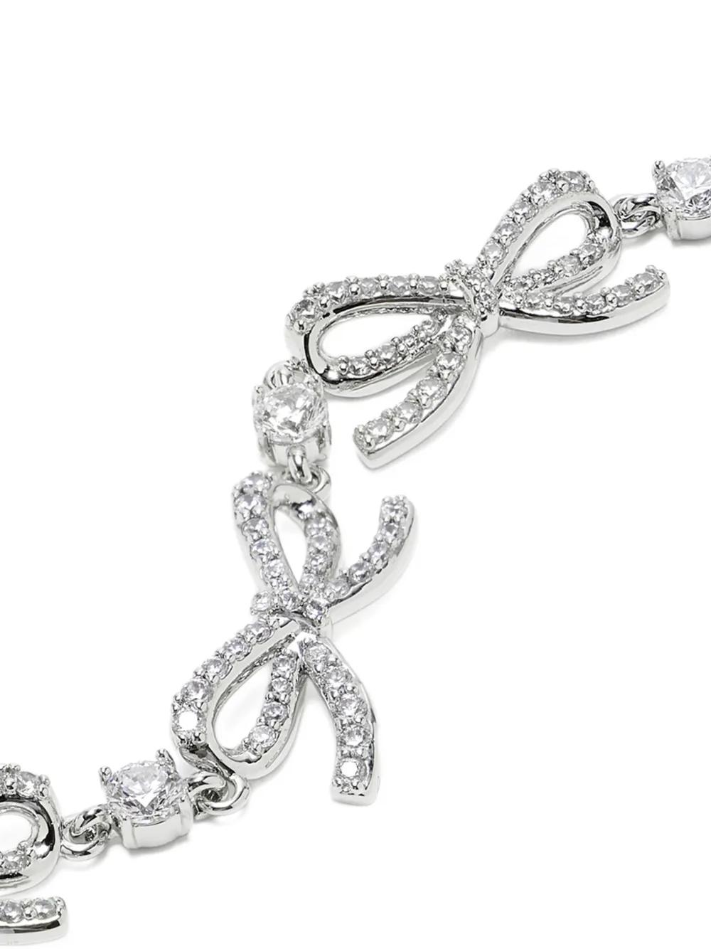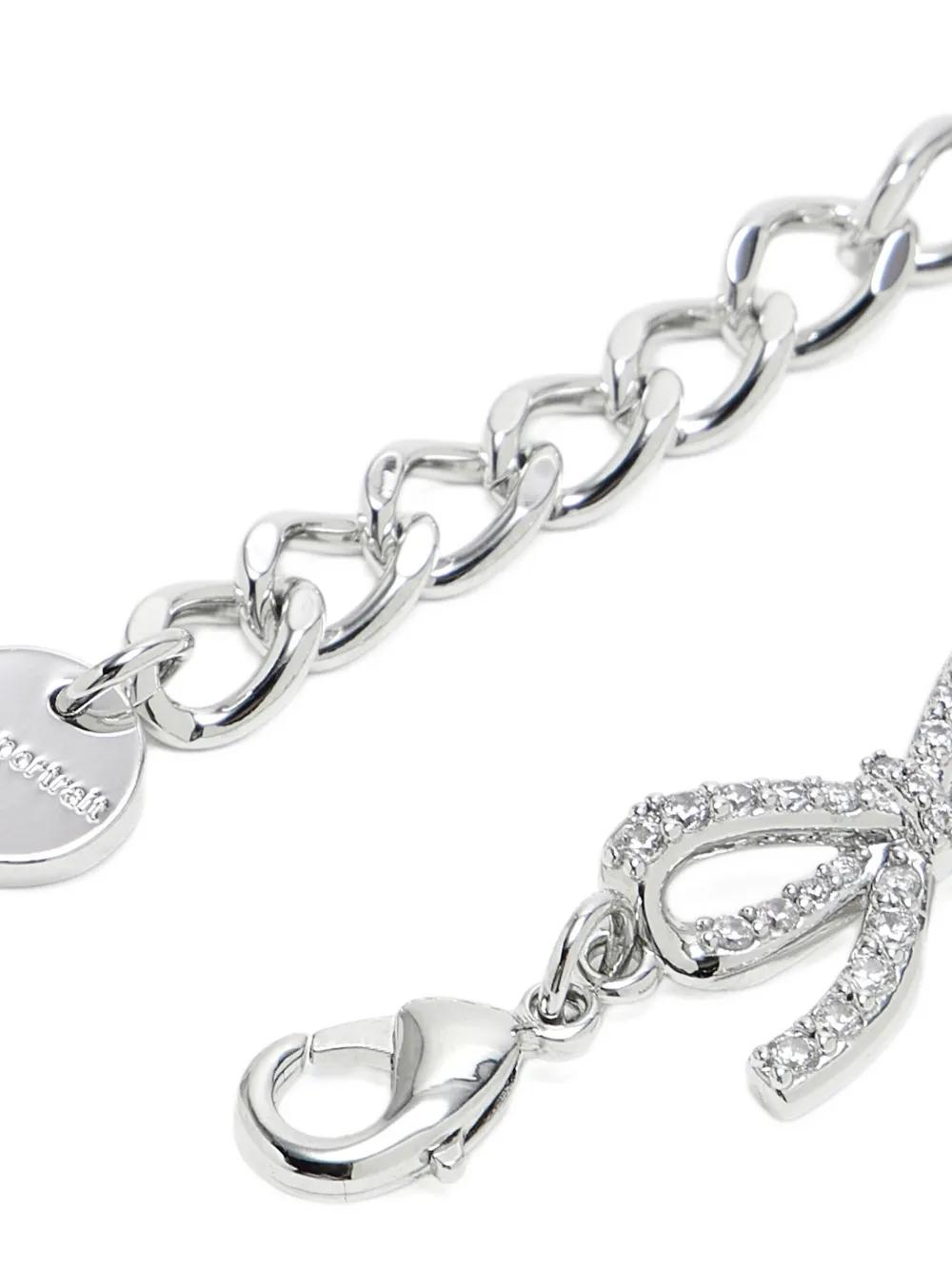 silver-tone lobster claw fastening crystal embellishment cable-link chain bow detailing