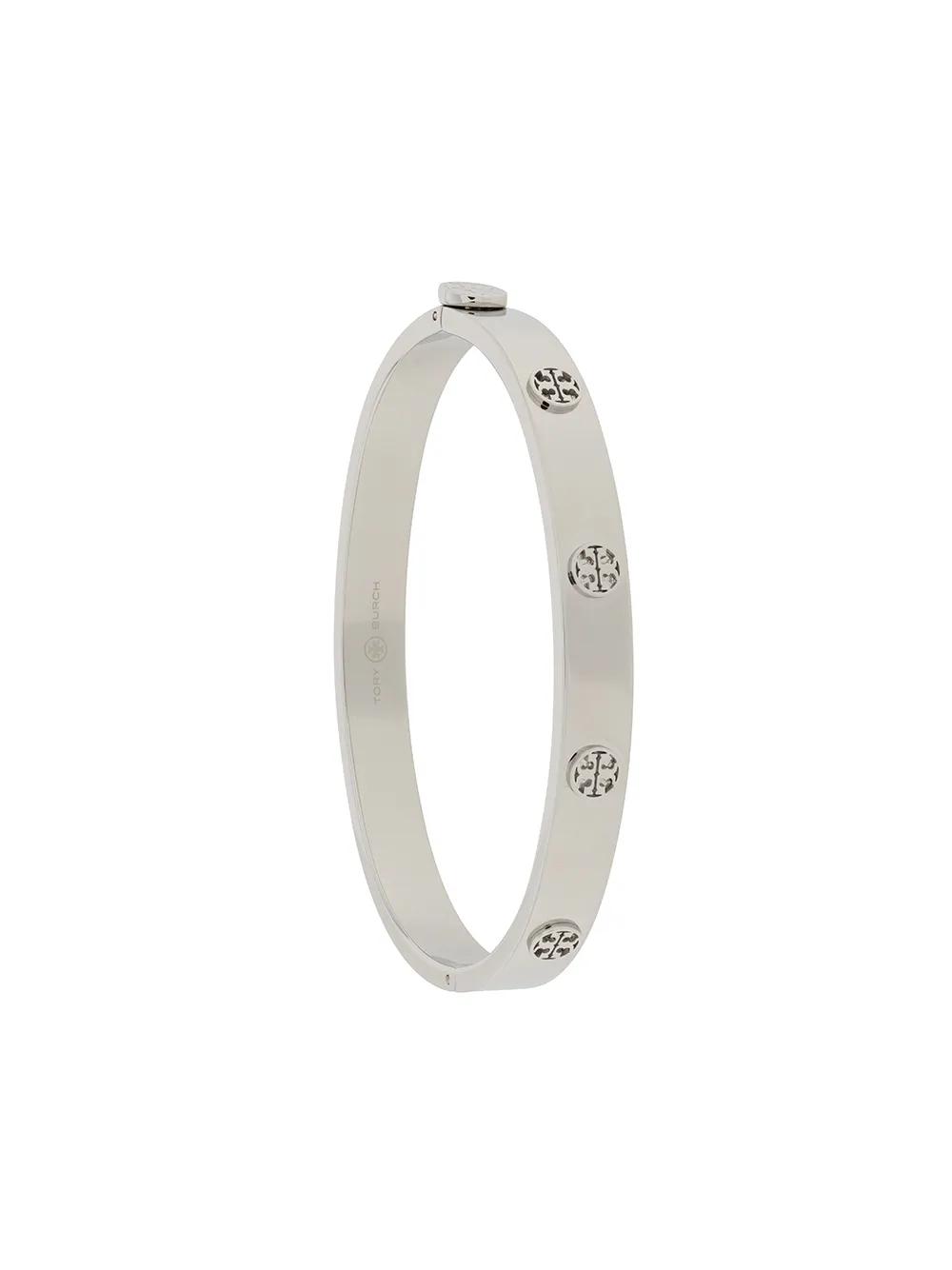 silver-tone stainless steel polished finish clip-lock fastening engraved logo