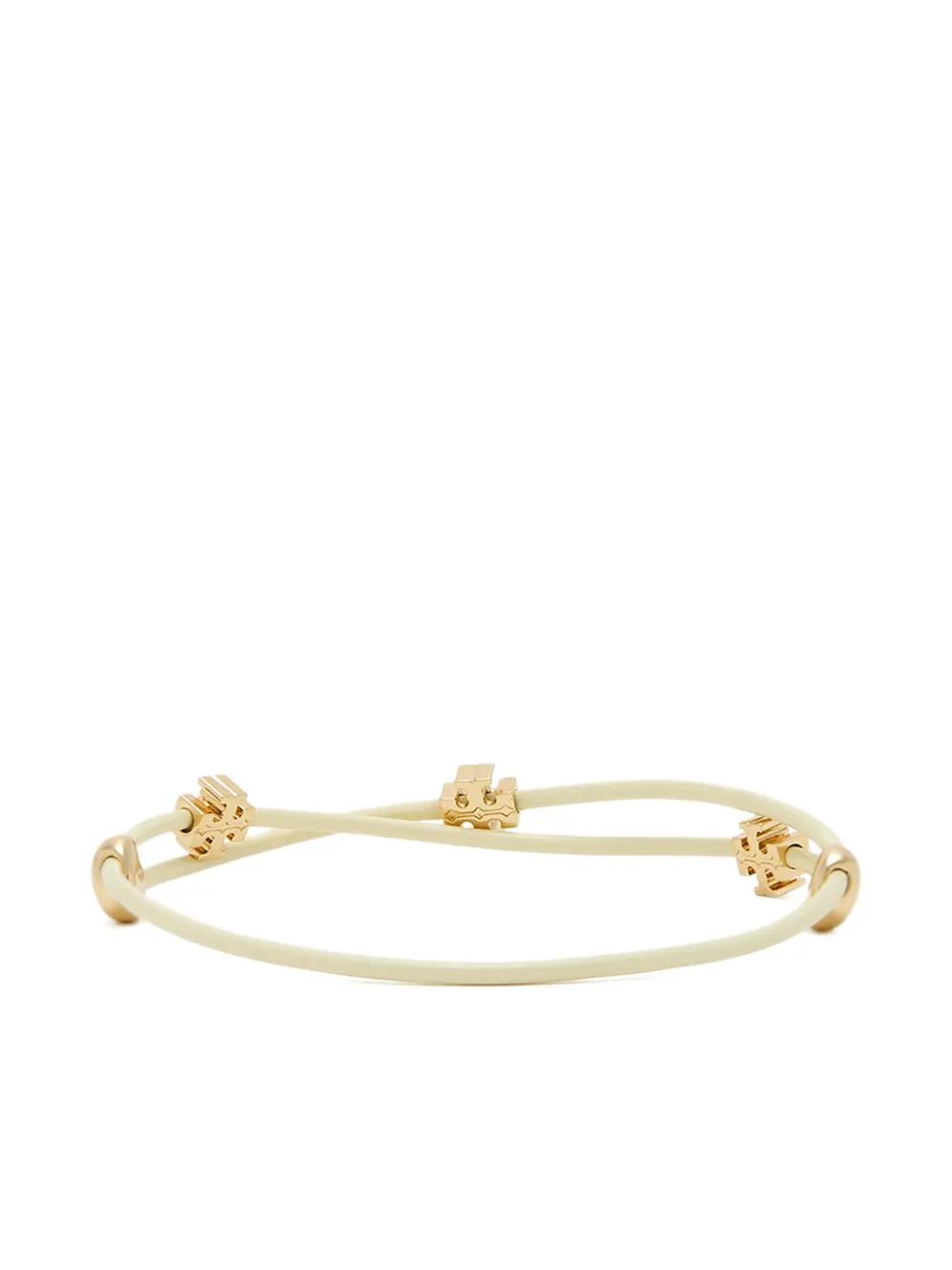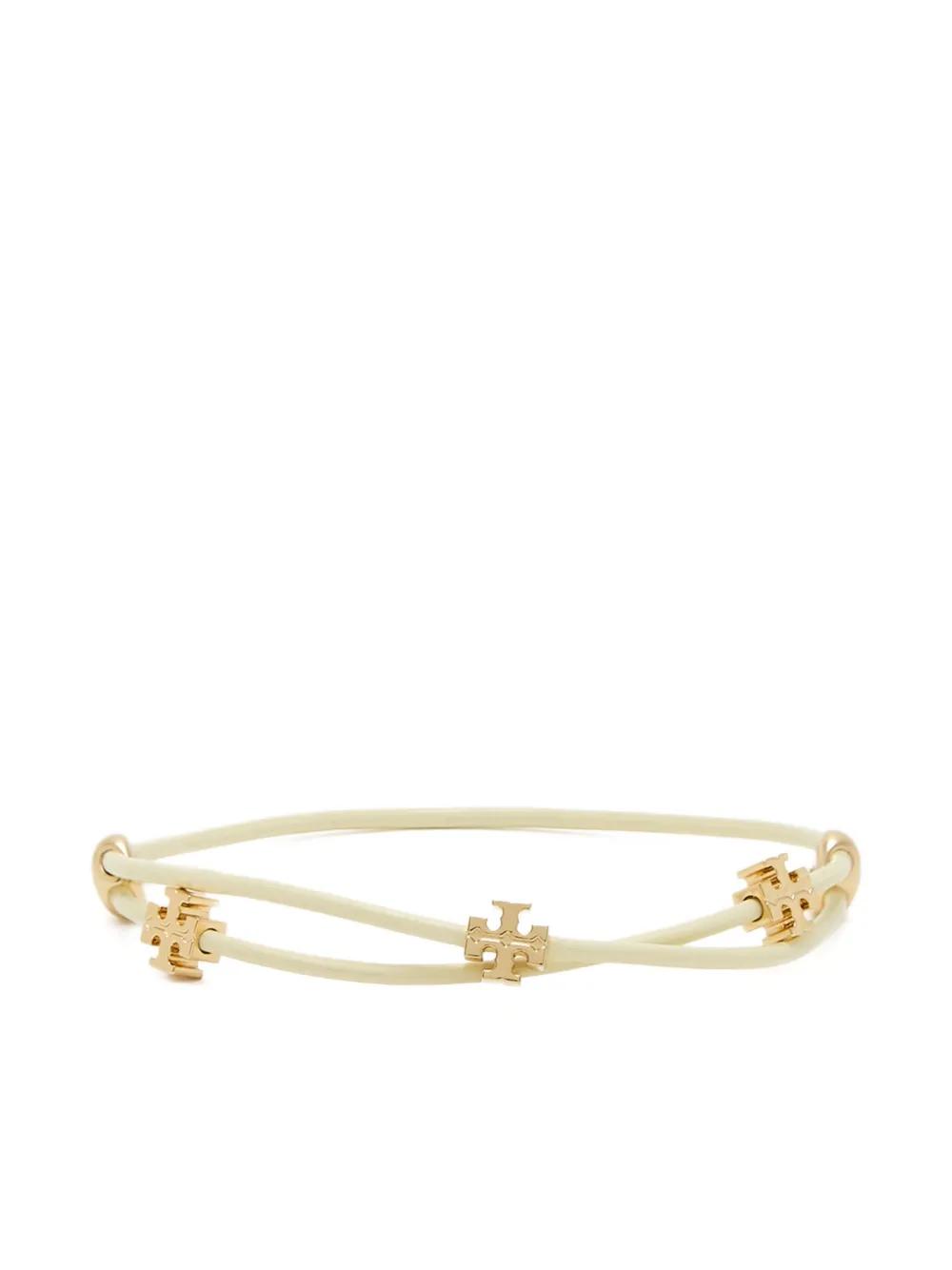 ivory leather cord gold-tone logo plaque three logo-plaque embellishments double-wrap design beaded end caps