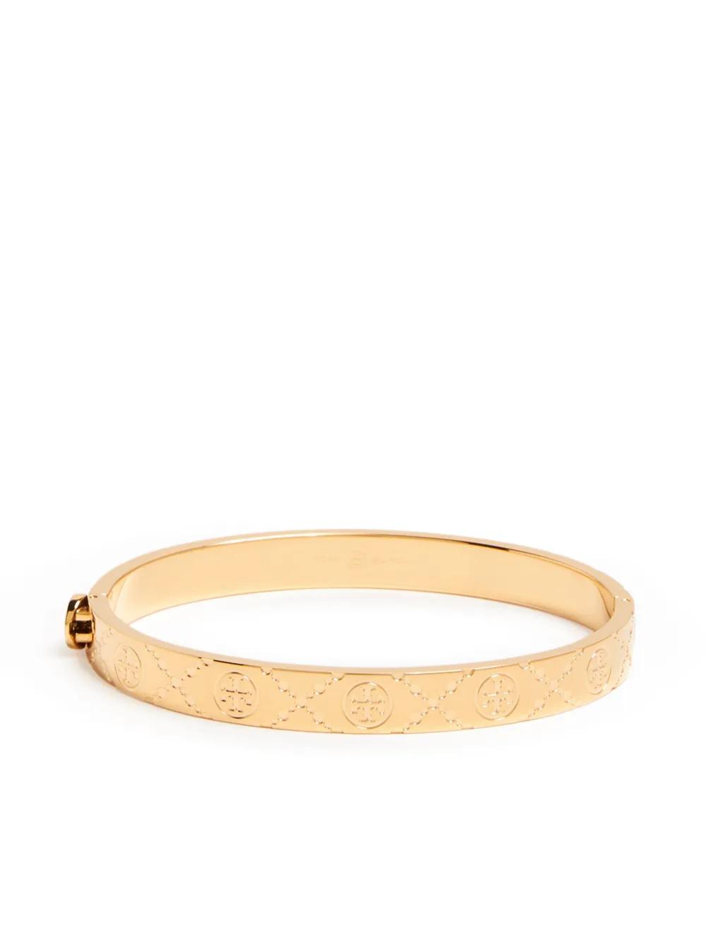 gold-tone stainless steel nickel-free signature T monogram push-lock closure