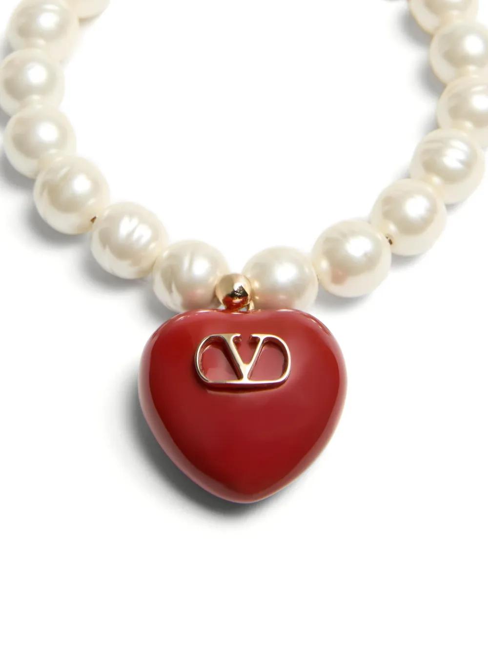 white/red crystal logo charm pearl detailing lobster claw fastening gold-tone hardware polished finish