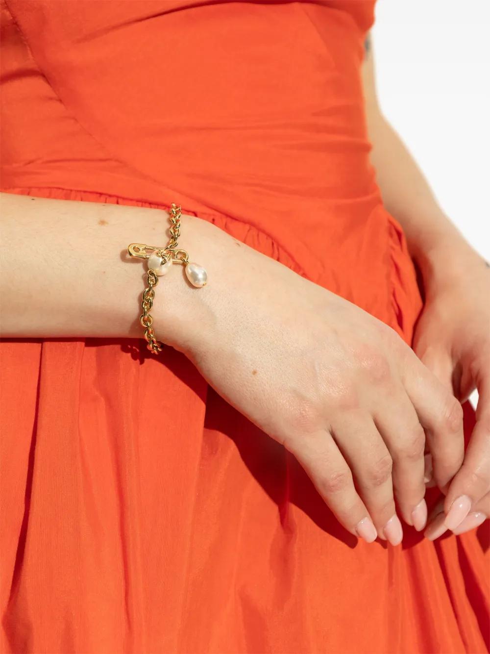 gold-tone lobster claw fastening pearl detail safety pin detail