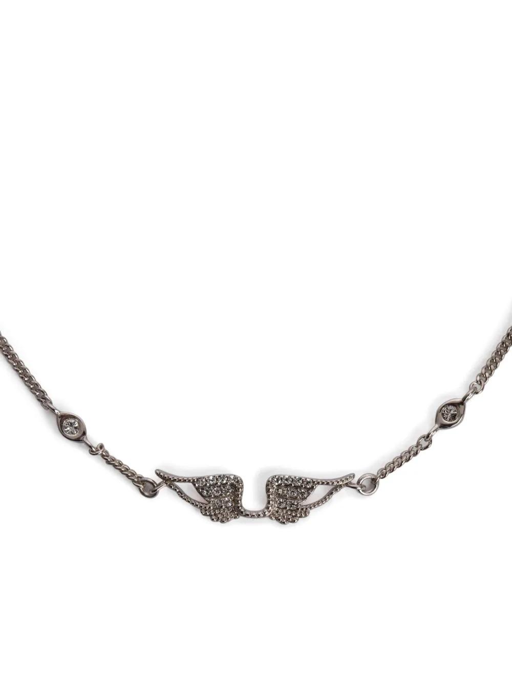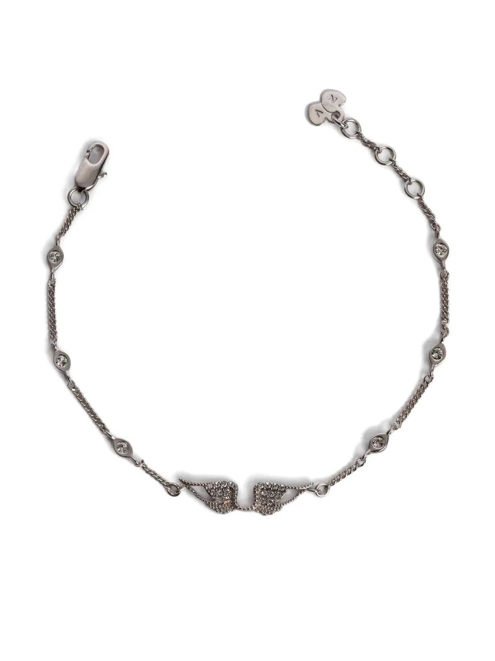 silver-tone brass polished finish cable-link chain charm detail crystal embellishment logo charm lobster claw fastening adjustable fit