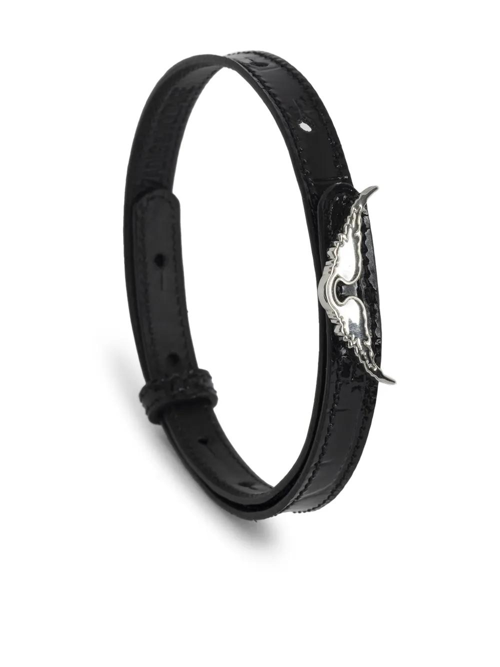 black calf leather logo-buckle fastening punched holes adjustable fit
