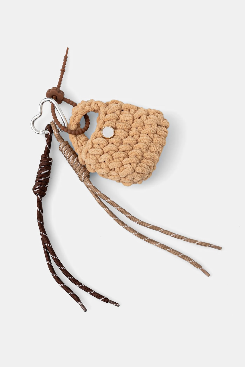 brown heart shape floral charm detail chain-link detail keyring detail faux-pearl detail